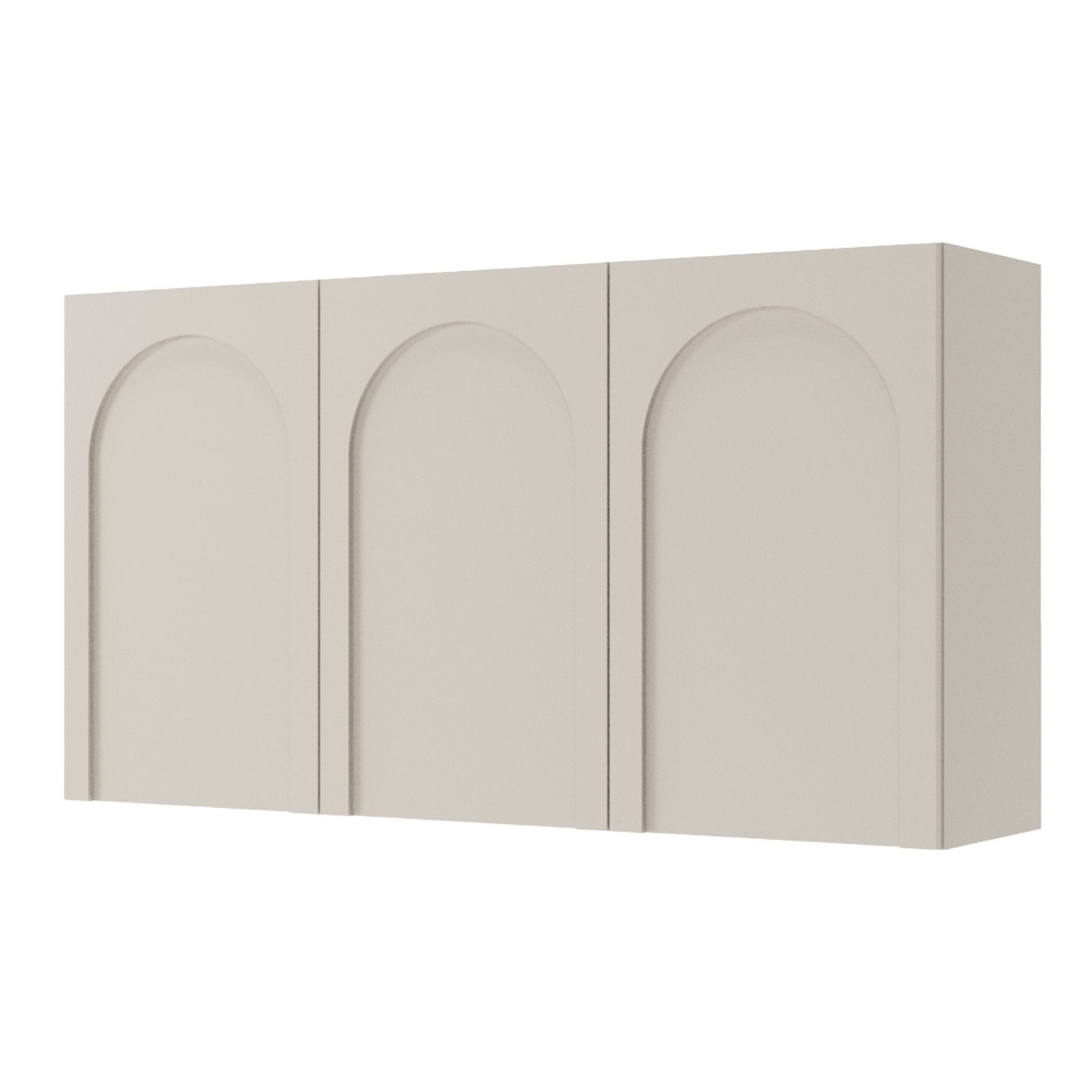 Die Türen mit Tip-On-Öffnungssystem ermöglichen ein griffloses, minimalistisches Design und lassen sich durch leichtes Antippen komfortabel öffnen. Die dekorativen Bögen auf der Front unterstreichen den modernen Look und verleihen dem Möbelstück einen stilvollen, harmonischen Akzent.