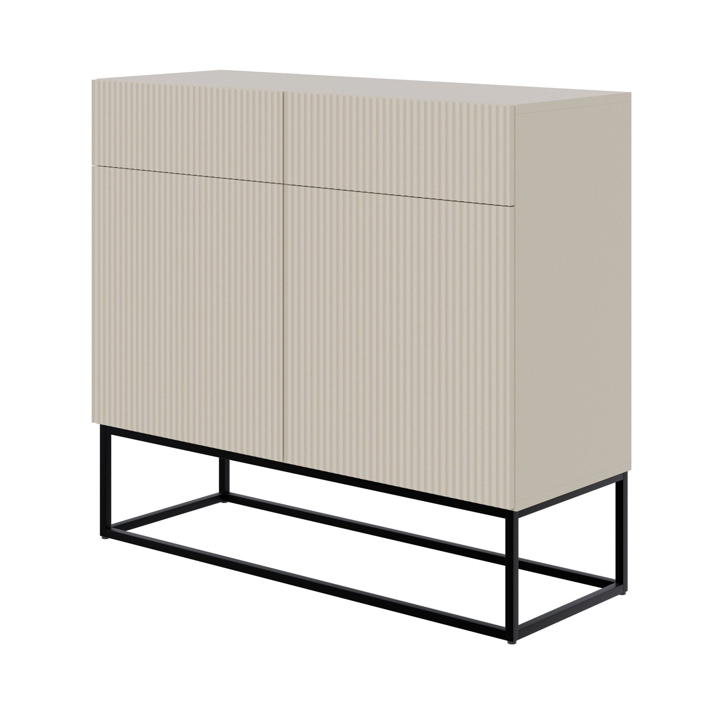 Verleihen Sie Ihrem Zuhause mit dem Veldio Sideboard einen Hauch von Eleganz und Funktionalität. Dieses Möbelstück verbindet minimalistisches Design mit stilvollen Details und bietet gleichzeitig großzügigen Stauraum. Die geriffelte Front sorgt für einen modernen Look, während die schlanken Beine das zeitlose Design unterstreichen. Mit einer breiten Ablagefläche wird das Sideboard nicht nur zum Blickfang, sondern auch zu einem vielseitigen Helfer im Alltag.