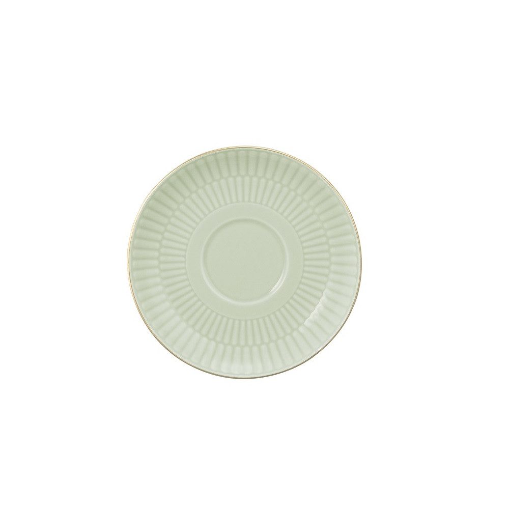 Die kleine Kombi-Untere „Amina“ von Seltmann Weiden ist die perfekte Ergänzung zur gleichnamigen Tassenserie. In edlem Seladon-Grün gehalten und mit einem feinen Goldrand verziert, überzeugt sie durch ihr klassisches und stilvolles Design. Mit einer Höhe von 2,0 cm und einem Durchmesser von 11,9 cm bietet sie eine ideale Ablagefläche für Espresso- oder kleine Teetassen. Ob für den täglichen Gebrauch oder besondere Anlässe – diese hochwertige Untertasse rundet das elegante Gesamtbild der „Amina“-Kollektion perfekt ab.