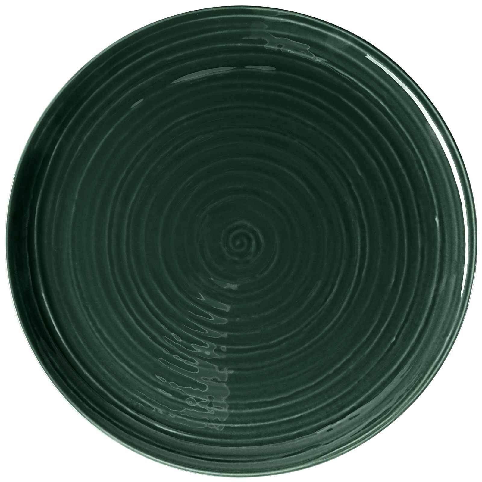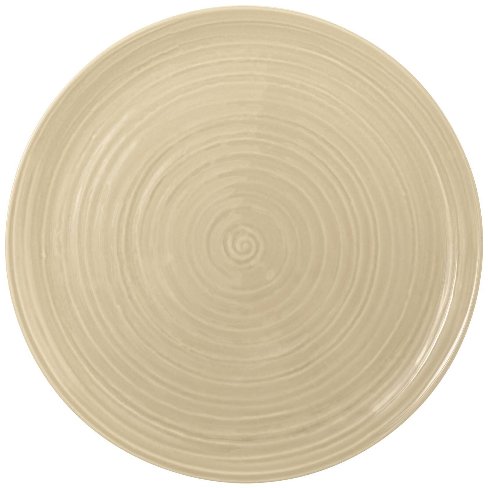 TERRA – die Erde. Aus Feuer, Luft, Wasser und Erde hergestellt – etwas poetisch ausgedrückt – ist die Porzellan-Serie `TERRA´ quasi eine sinnbildliche Всеgorie unseres Planeten. Die reliefartige, spiralförmige Struktur dieser Form kann man dabei durchaus als kreiselnd interpretieren. Das Finish mutet in jedem Fall wie jene „craftsmanship“ an, bei der der Betrachter unwillkürlich die Unregelmäßigkeiten sucht, die jedes unikative Werk in sich trägt. Die formbedingt ungleichmäßig aufgetragene Glasur unterstreicht diesen Eindruck und sorgt für stets wechselnde Licht-Reflexe. Fein ausgeformt löst es wohltuend „heimelige“ Emotionen aus – und verfügt dabei über alle herausragenden Eigenschaften des Hart-Porzellans. Die Porzellan-Serie TERRA erdet den Betrachter und tut der Seele einfach gut… Der Dekor `Corso´ besteht aus einem weich übergehenden Rand, der den handwerklichen Charakter unterstreicht und dem Arrangement mehr „Halt“ verleiht. Ein Blickfang, der stets zum „Begreifen“ verleitet – dabei außerdem leicht rustikal und wohnlich auftritt. Zeitlosigkeit in seiner schönsten Form …