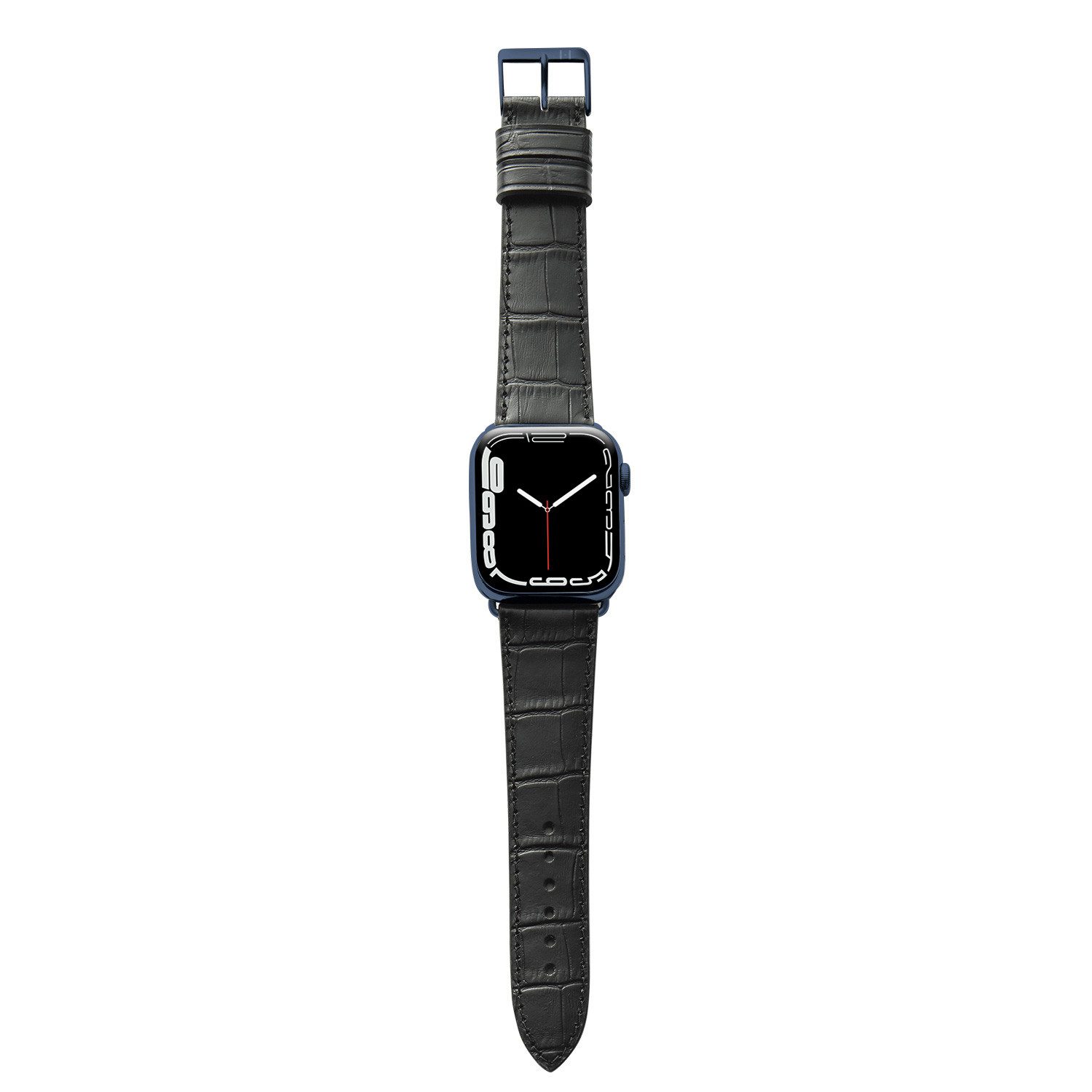 Uhrenarmband Lederarmband ROTHENBAUM, kompatibel mit Apple Watch 1-9, SE, Schwarz