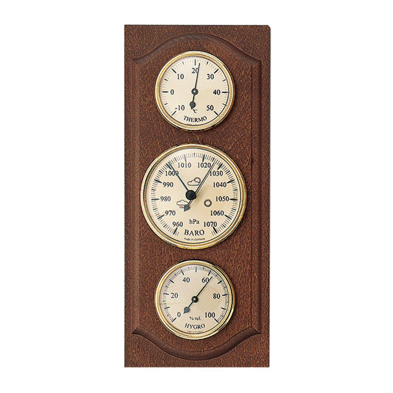 Wetterstation mit Barometer, Thermometer und Hygrometer, aus Nussbaum in Unterfranken hergestellt.