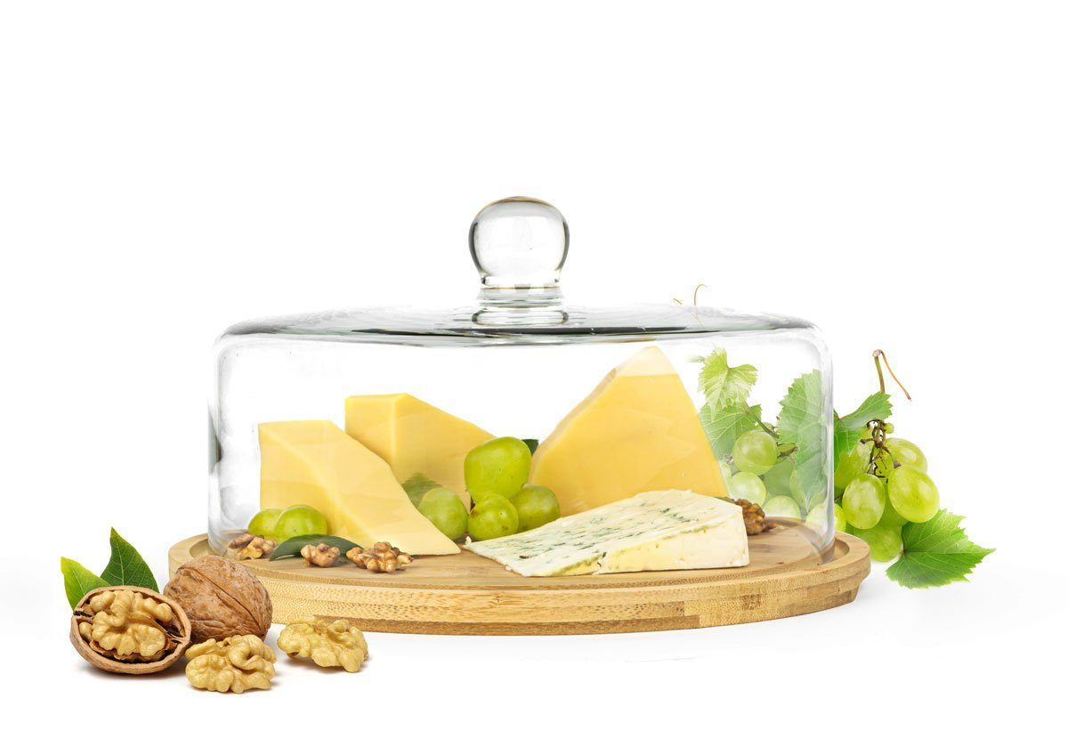 Käseglocke Käseglocke mit Schneidebrett 28cm Glasglocke Glashaube Kuchenglocke
