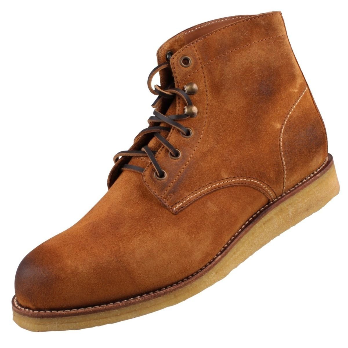 Dieser Schnür-Stiefel wurde aus hochwertigem Veloursleder gearbeitet. Das Leder hat einen Used-Look. Innenfutter aus Leder. Decksohle Textil. Die sehr hohe Langlebigkeit dieser Stiefel sehen Sie auch an der Kreppsohle mit leichtem Keilabsatz von 30-mm.