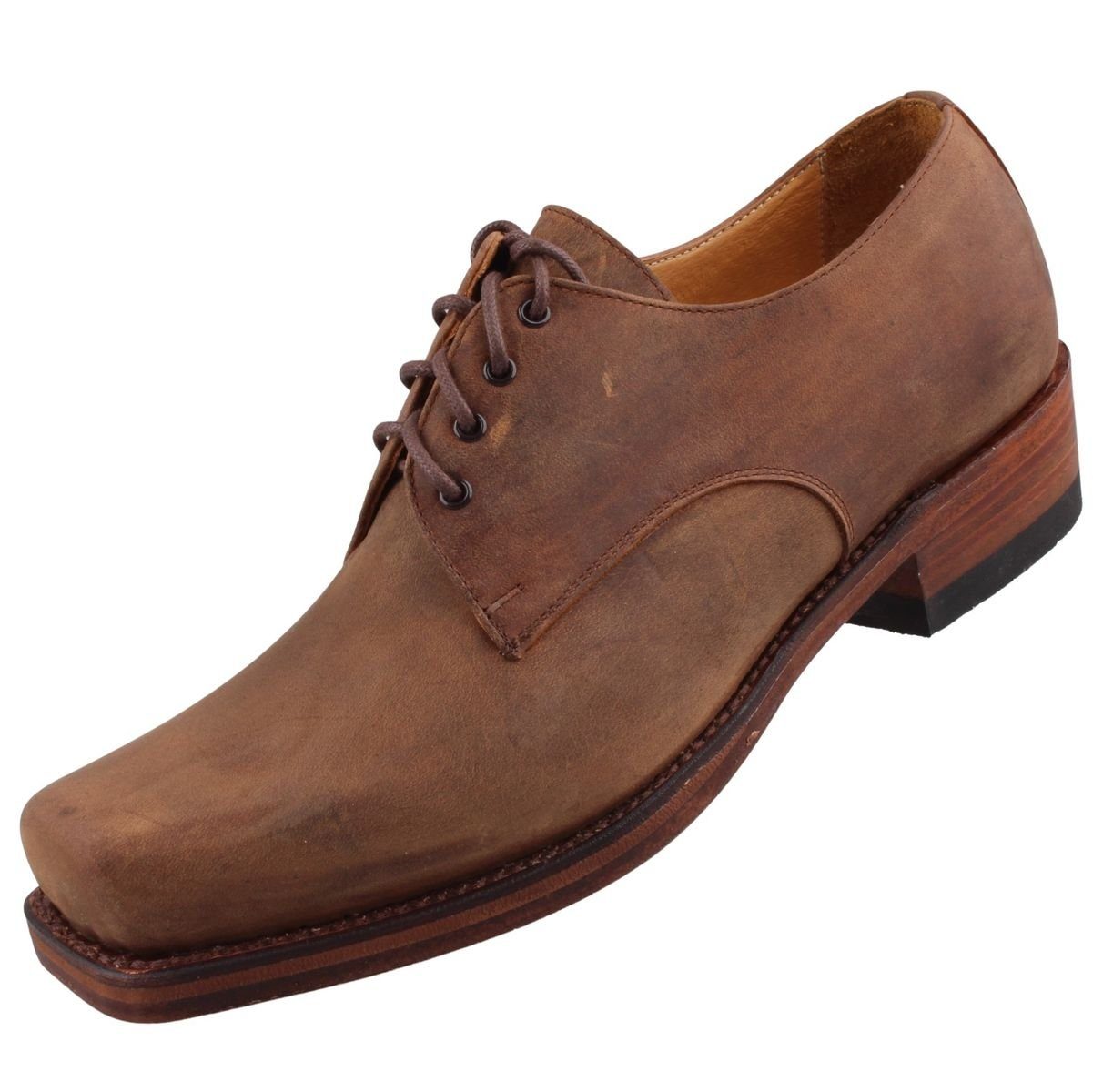 Dieses Modell vereint klassische Eleganz mit kernigem Biker-Style! Auf den ersten Blick ein ganz normaler eleganter Herrenschuh, jedoch beim zweiten Hinsehen erkennt man den feinen Unterschied. Durch den 4 cm hohen Absatz und die ausgeprägte Kareé-Form der Schuhspitze bekommt der Schnürer einen leichten Biker-Look.