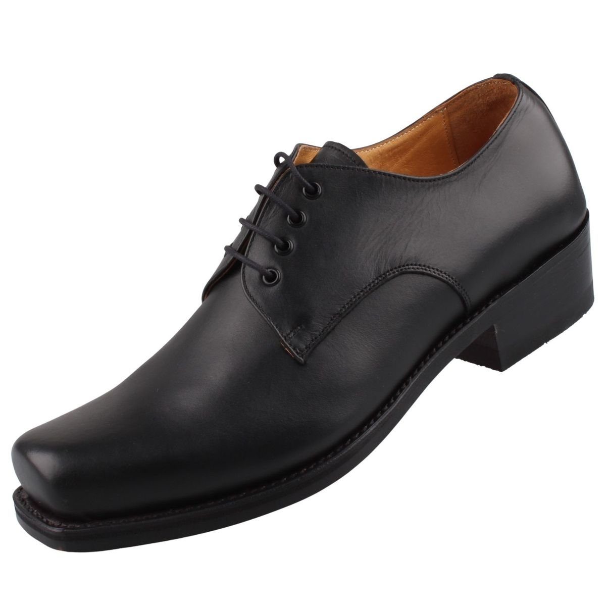 Dieses Modell vereint klassische Eleganz mit kernigem Biker-Style! Auf den ersten Blick ein ganz normaler eleganter Herrenschuh, jedoch beim zweiten Hinsehen erkennt man den feinen Unterschied. Durch den 4 cm hohen Absatz und die ausgeprägte Kareé-Form der Schuhspitze bekommt der Schnürer einen leichten Biker-Look.