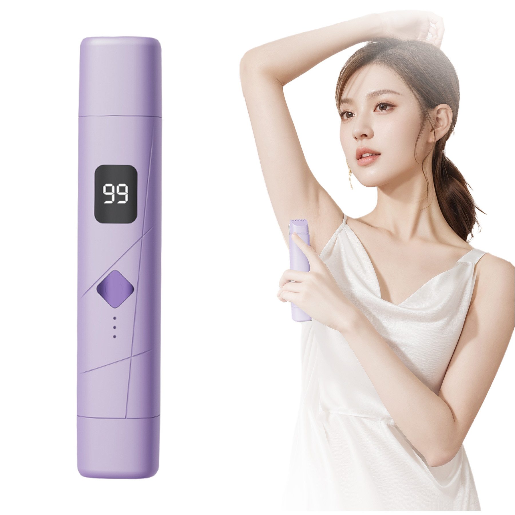 Dieser Frauen-Haarschneider ist so konzipiert, dass er natürlich entlang der individuellen Konturen des Körpers gleitet, für glatte Ergebnisse auf Armen, Beinen, Achselhöhlen, Scham und Bikinizone.