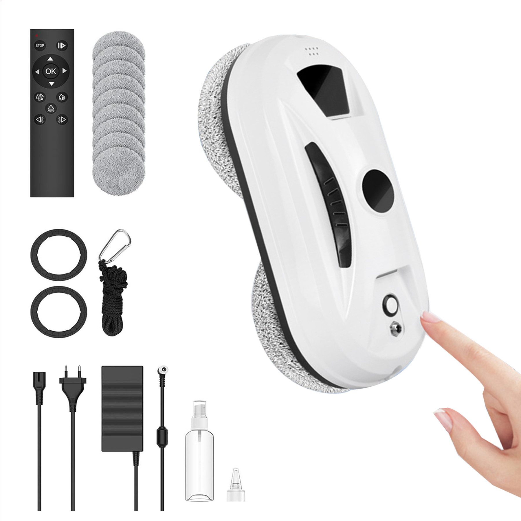 Mitgeliefertes Zubehör | 1 * Fensterputzroboter(290*144*90mm). 10 * Reinigungstücher. 1 * Sicherheitsseil. 1 * Netzkabel.1 * Bedienungsanleitung.4 * Reinigungsring.1 * Fernbedienung. 1 * Ultraschalldüsen. 1 * Netzadapter |