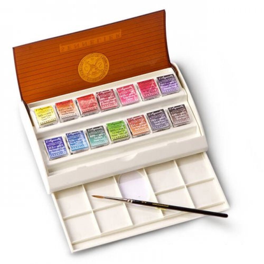 14 halbe Näpfchen in praktischer Reisebox, inkl. Pinsel