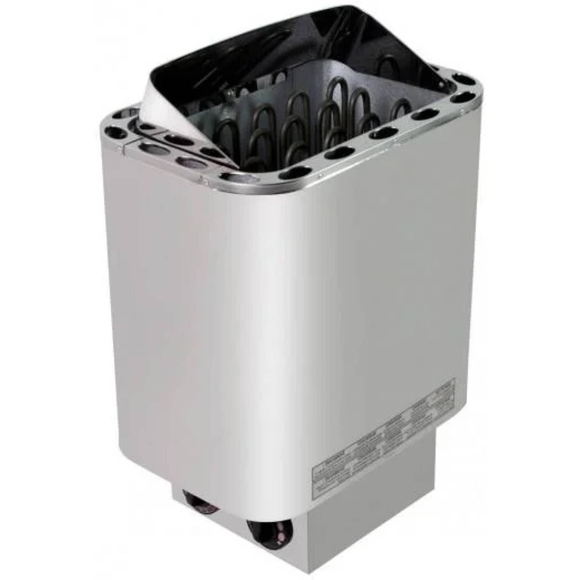 Der elektrische Saunaofen hat eine Leistung von 9 kW und ist für Saunen mit einem Volumen zwischen 8 bis 14 m³ perfekt geeignet. Ein Außenmantel aus poliertem Edelstahl, feuerverzinkten Innenmantel, Hitzeschild und Abdeckrahmen sowie Rost- und verzunderungsfreien Heizstäben machen den Saunaofen hochwertig und langlebig.