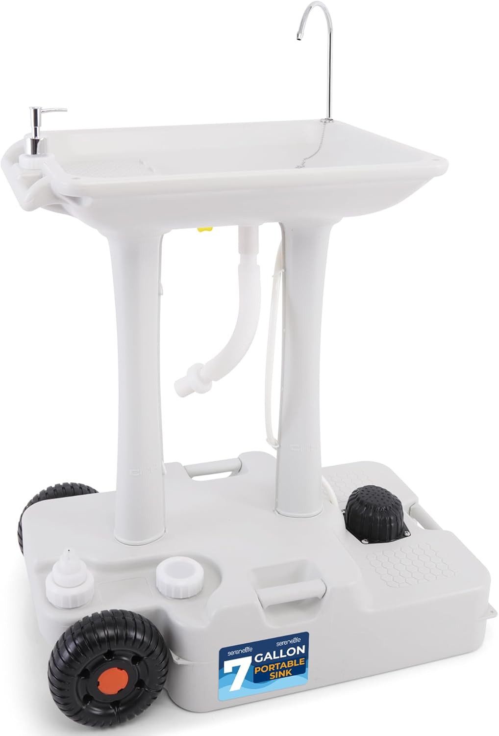 LEICHT ZU TRANSPORTIEREN, PERFEKT FÜR REISEN – Mit dem praktischen Griff und den Rollrädern ist das Waschbecken ideal für den mobilen Einsatz. Kompakt und leicht – ideal als Gartenwaschbecken, Camping-Waschstation oder als Handwaschbecken im Sommer für deinen Garten oder Balkon.