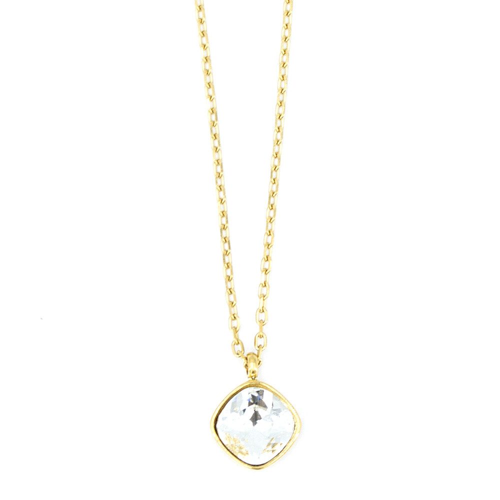 Diese Halskette ist verziert mit einem glänzend veredelten Kristallanhänger mit den Maßen 10x10 mm. Kette und Anhänger sind aus hochwertigem, wasserfestem Edelstahl oder PVD-beschichtetem Edelstahl gefertigt. Die Gesamtlänge der Kette beträgt etwa 40 cm, mit einer Verlängerung für Anpassungsmöglichkeiten. Wir fertigen gemäß Ihrer Bestellung alle Schmuckstücke in unserer Berliner Werkstatt von Hand. Bitte vermeiden Sie sogenannte Probier- oder Auswahlsendungen, damit es nicht zu unnötigen Retouren kommt – unserer Arbeit und der Umwelt zuliebe!