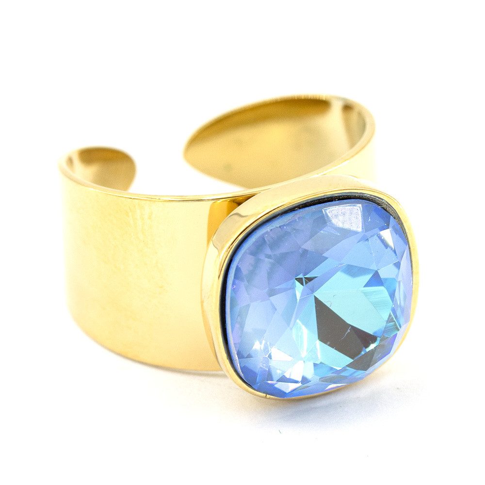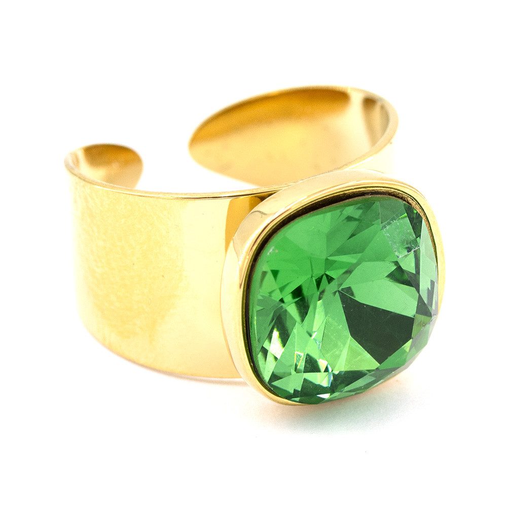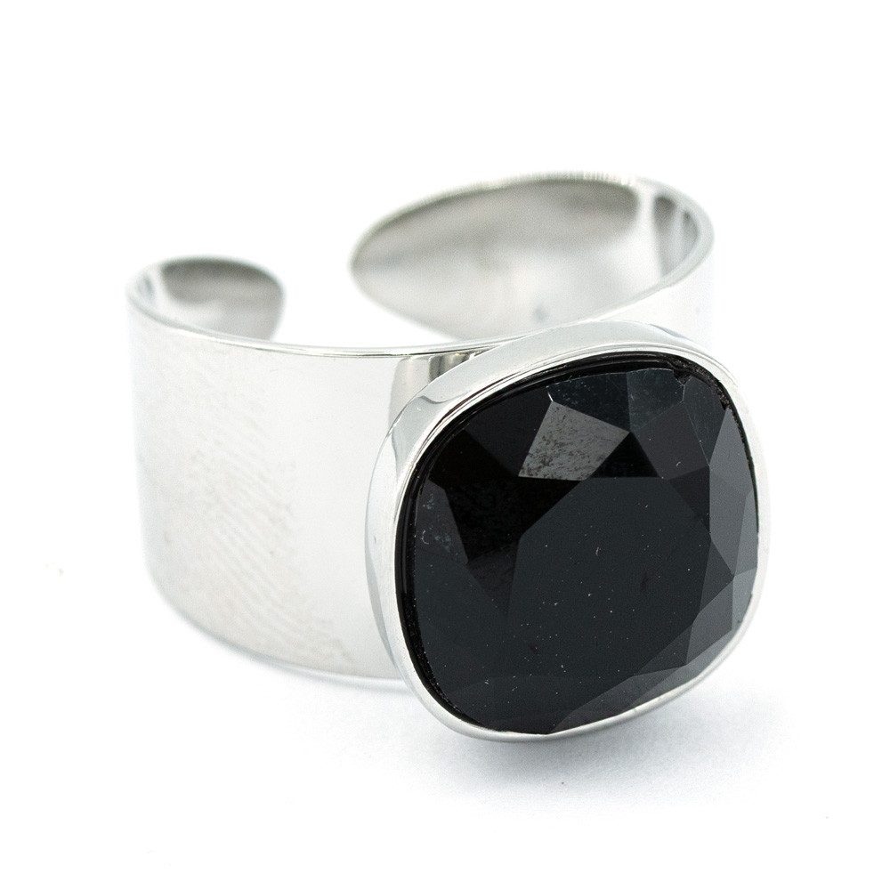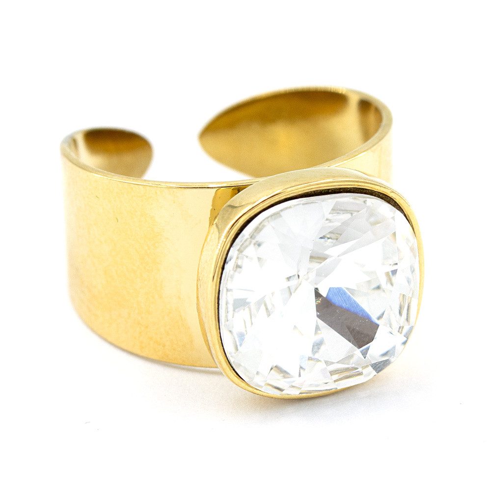 Dieser Ring aus Edelstahl bzw. PVD-beschichtetem Edelstahl ist eine elegante Ergänzung für jedes Outfit. Er ist größenverstellbar und passt sich daher bequem an verschiedene Fingergrößen an. Der Ring ist mit einem edlen Kristall besetzt, der eine Размер von ca. 12x12mm hat. Die breite Ringschiene sorgt für Stabilität und Komfort beim Tragen. Mit seinem glänzenden Finish verleiht dieser Ring Ihrem Look einen Hauch von Raffinesse und Eleganz. Wir fertigen gemäß Ihrer Bestellung alle Schmuckstücke in unserer Berliner Werkstatt von Hand. Bitte vermeiden Sie sogenannte Probier- oder Auswahlsendungen, damit es nicht zu unnötigen Retouren kommt – unserer Arbeit und der Umwelt zuliebe!