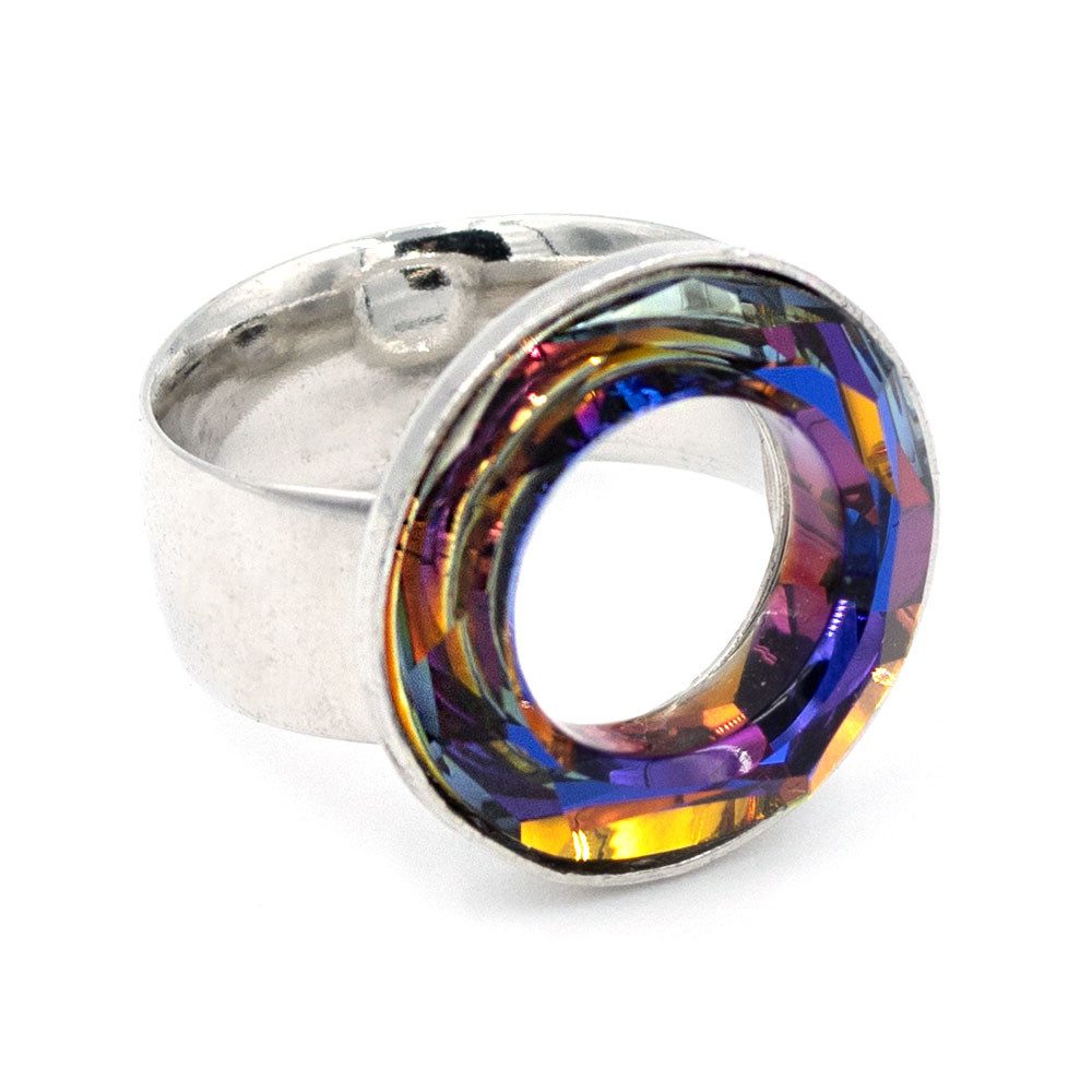 Der rhodinierte Statement-Ring mit edel changierendem Cosmic-Kristall ist ein echtes Ausgehstück. Er ist in drei verschiedenen Größen erhältlich und vielen schönen Kristallfarben. Das Oberteil hat einen Durchmesser von ca. 20mm und liegt schön flach am Finger an, so daß sich der Ring wunderbar bequem tragen lässt. Der Ring besteht aus glänzend rhodiniertem nickelfreien Messing und ist handgefertigt in Berlin Kreuzberg. Wir fertigen gemäß Ihrer Bestellung alle Schmuckstücke in unserer Berliner Werkstatt von Hand. Bitte vermeiden Sie sogenannte Probier- oder Auswahlsendungen, damit es nicht zu unnötigen Retouren kommt – unserer Arbeit und der Umwelt zuliebe!