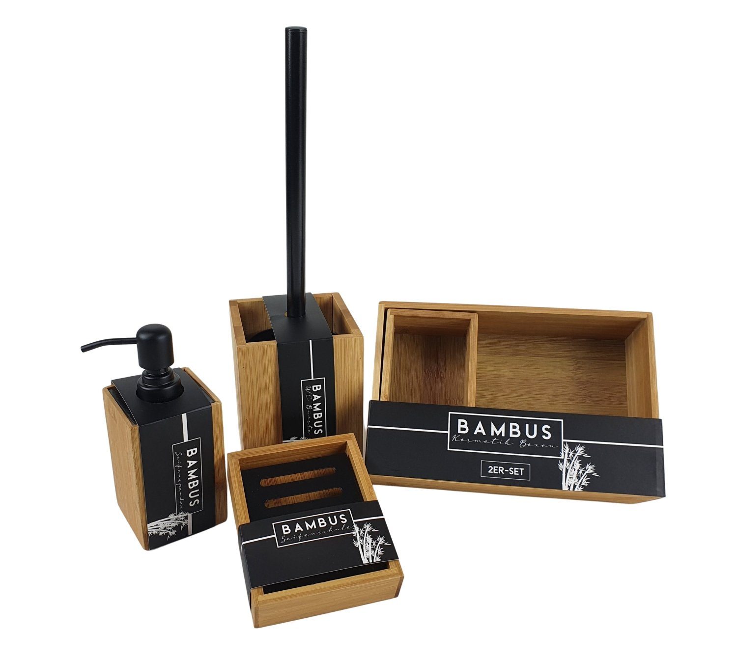 Toilettenbürstenhalter mit WC-Bürste: WC-Bürste und Schale aus Kunststoff (herausnehmbar) / Höhe Bambushalter: ca. 14,2cm / Gesamtmaße (BxHxT): ca. 10,5 x 37,5 x 10,5cm