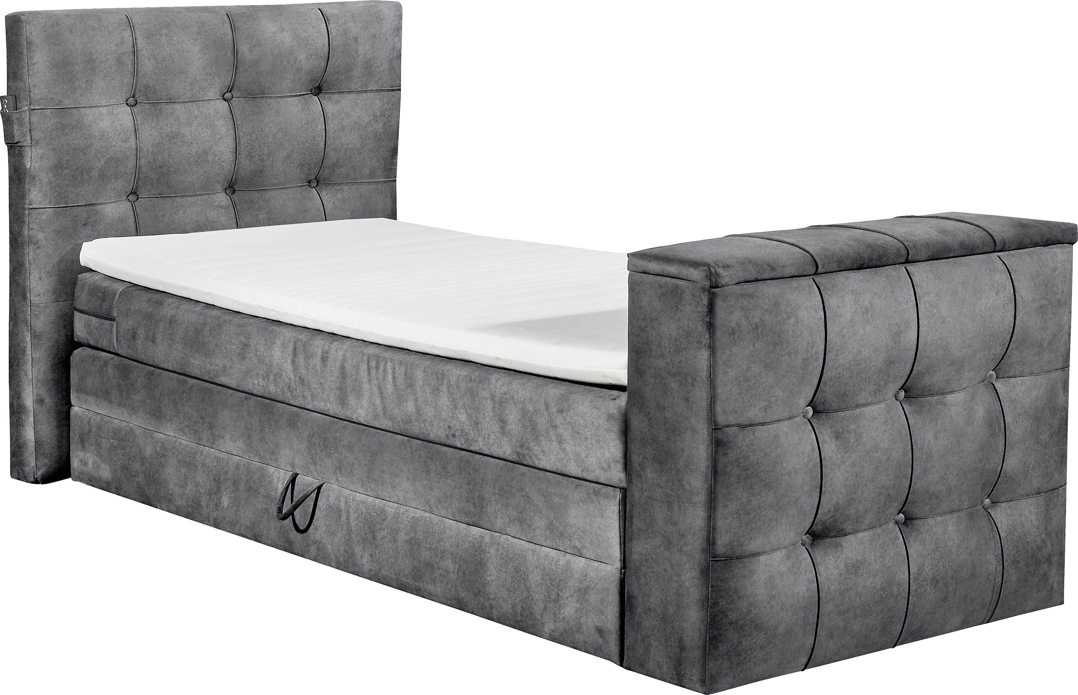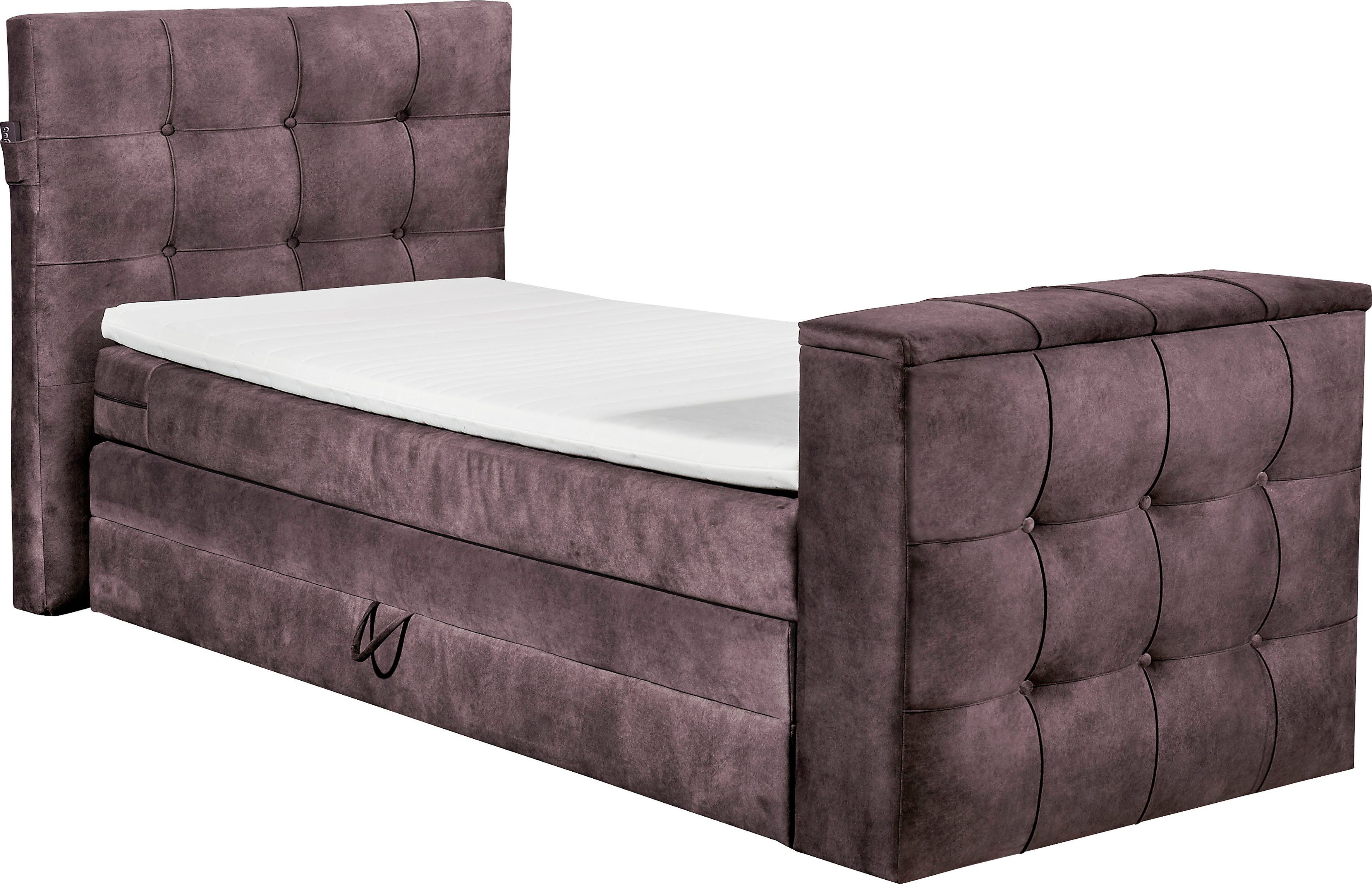 Ausstattung | 7-Zonen-Tonnentaschenfederkern, 2,0/1,8 mm, Duo-Matratze – harte Seite mit Kokosmatte Motorisierte TV- Halterung Wahlweise mit Bettkasten |