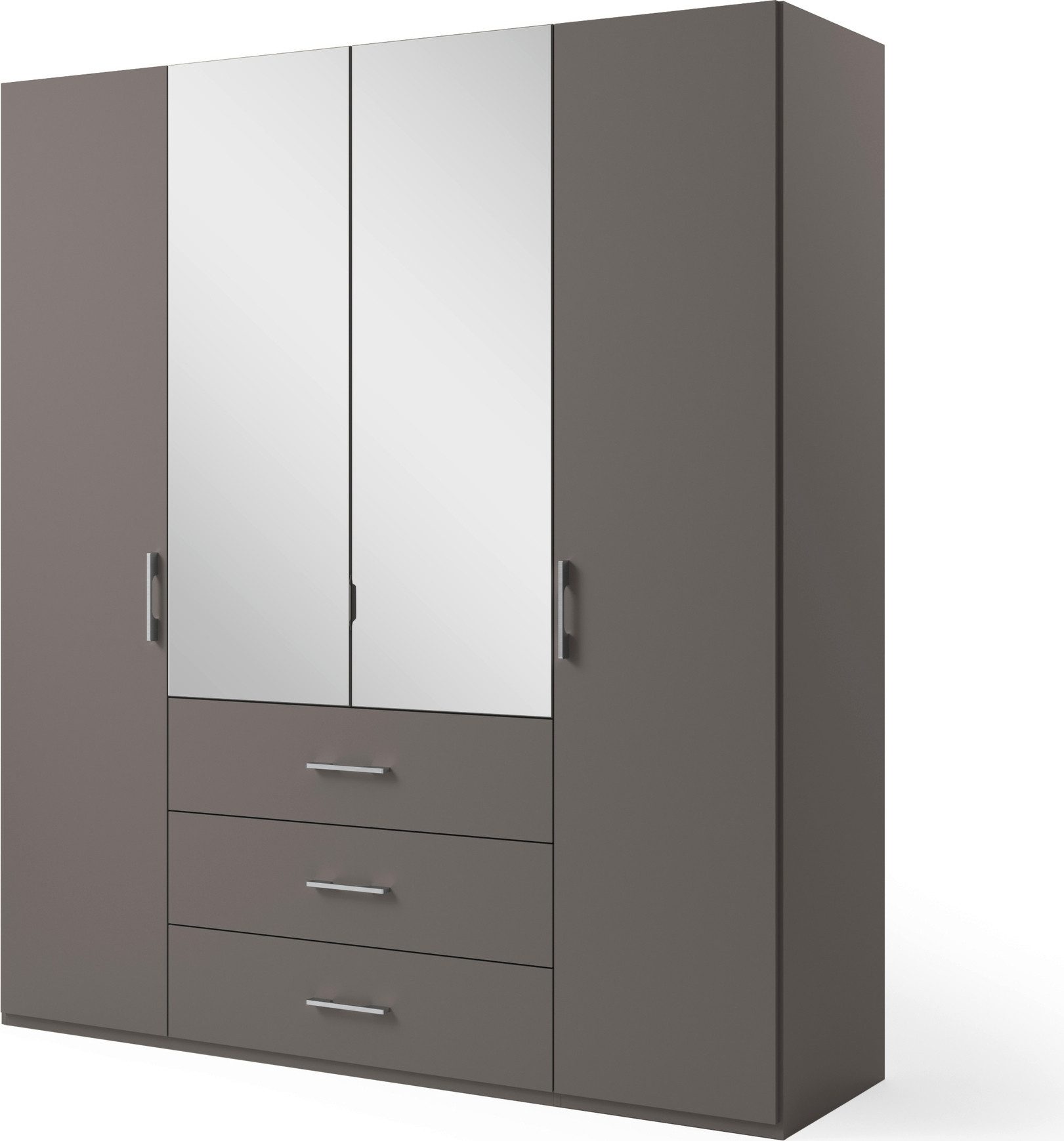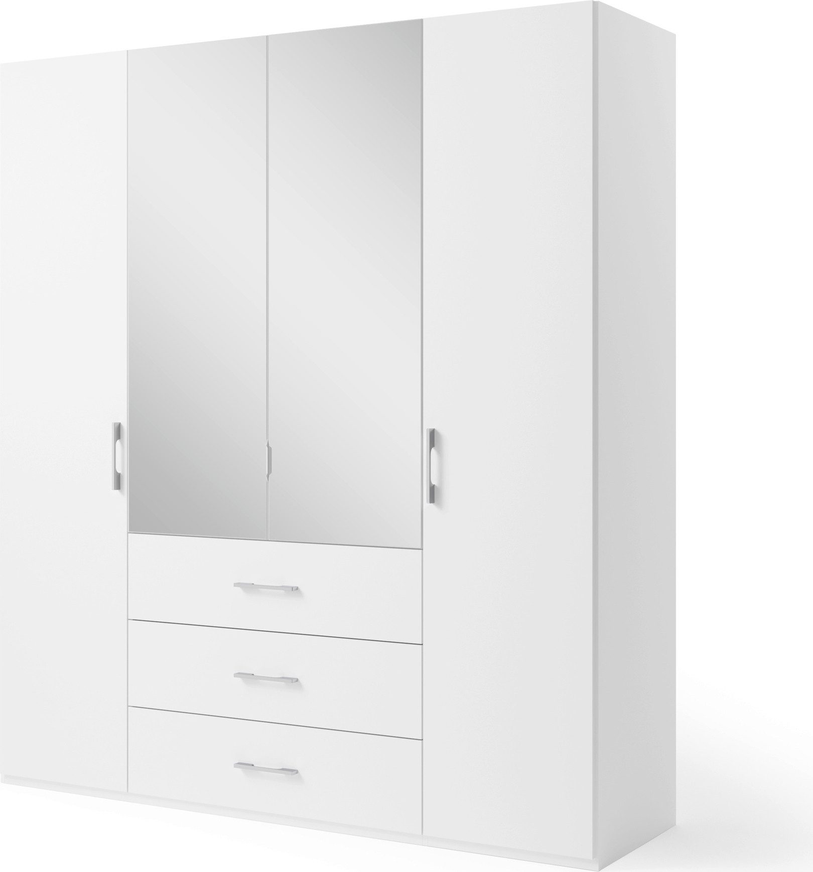 Die Verspiegelung bietet dir die Möglichkeit, dich komplett zu betrachten und lässt den Raum gleichzeitig etwas größer wirken. Wäsche oder kleinere Accessoires lassen sich in den integrierten Schubladen gut unterbringen. Um den Schrank genau auf deine Bedürfnisse auszurichten, sind die Einlegeböden flexibel einsetzbar.