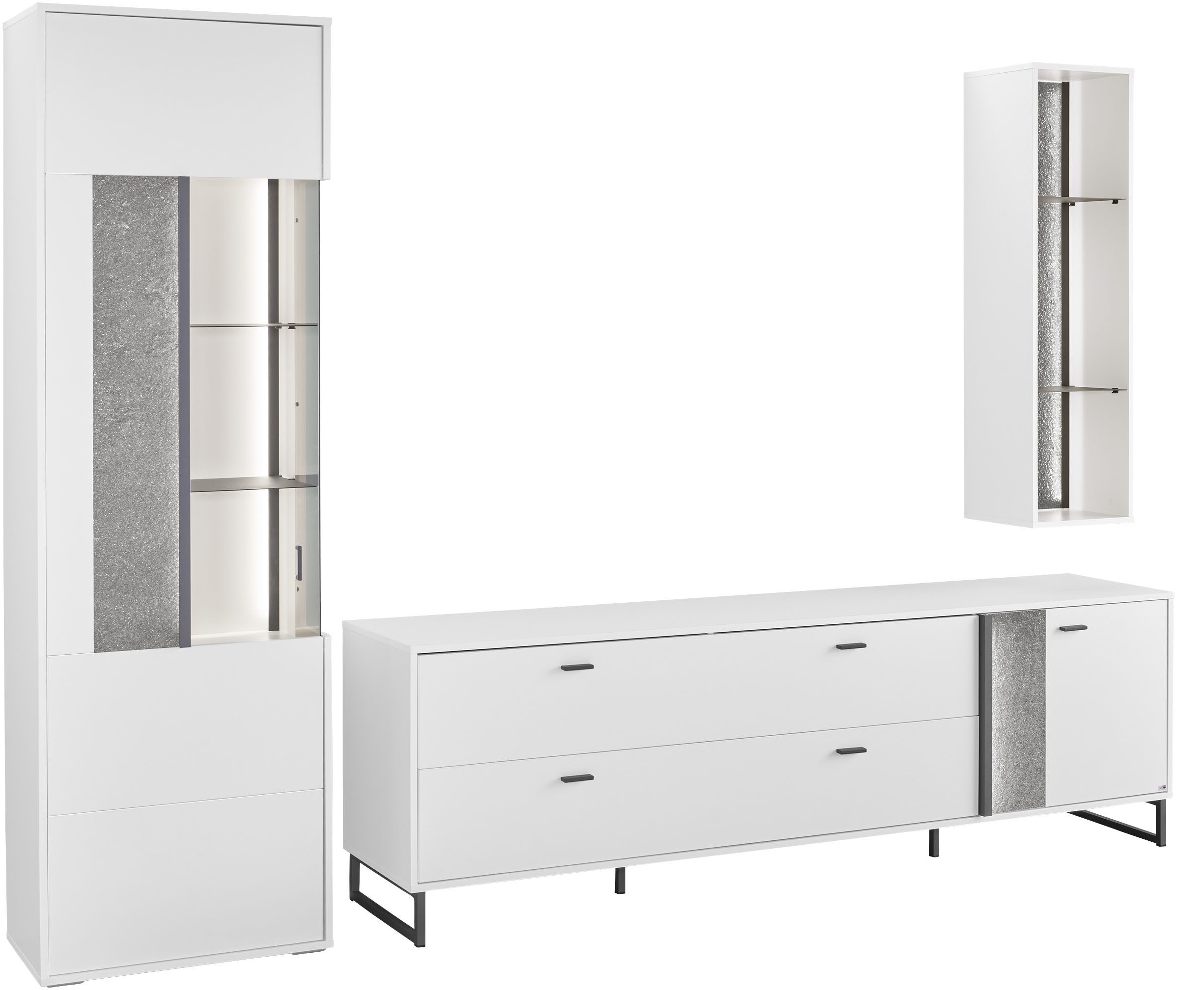 Set beinhaltet | Vitrine, Unterteil, Wandregal |