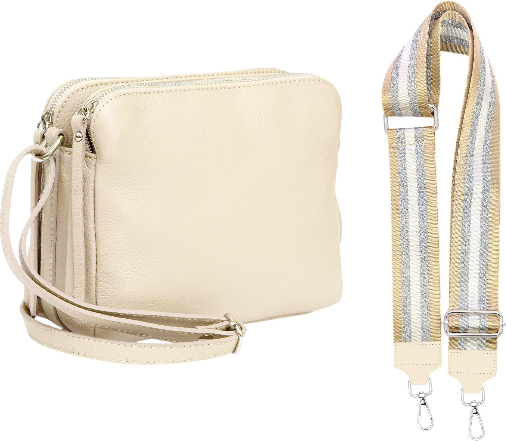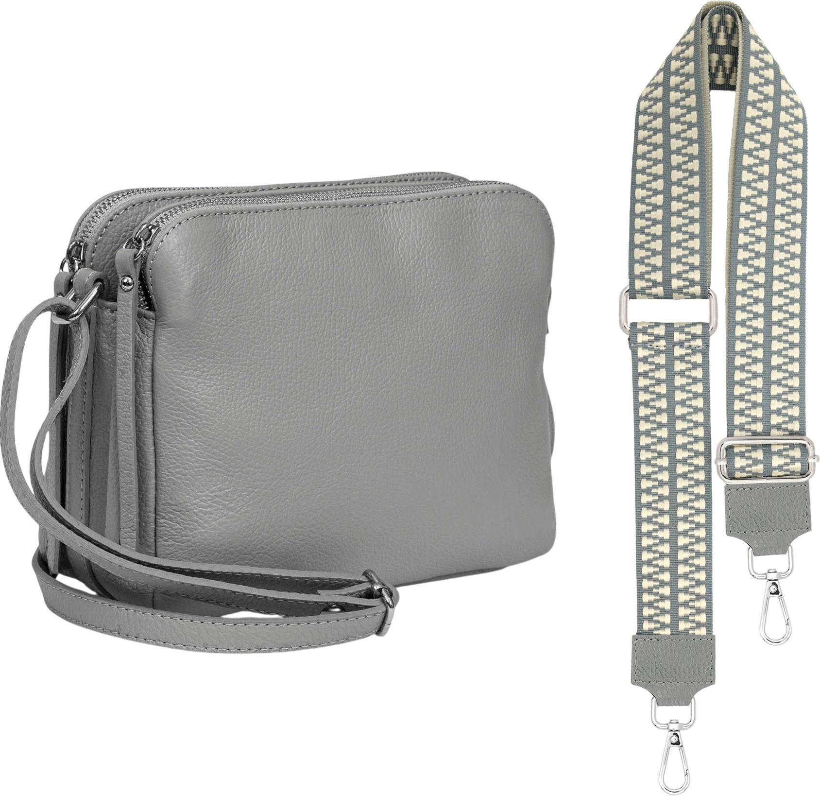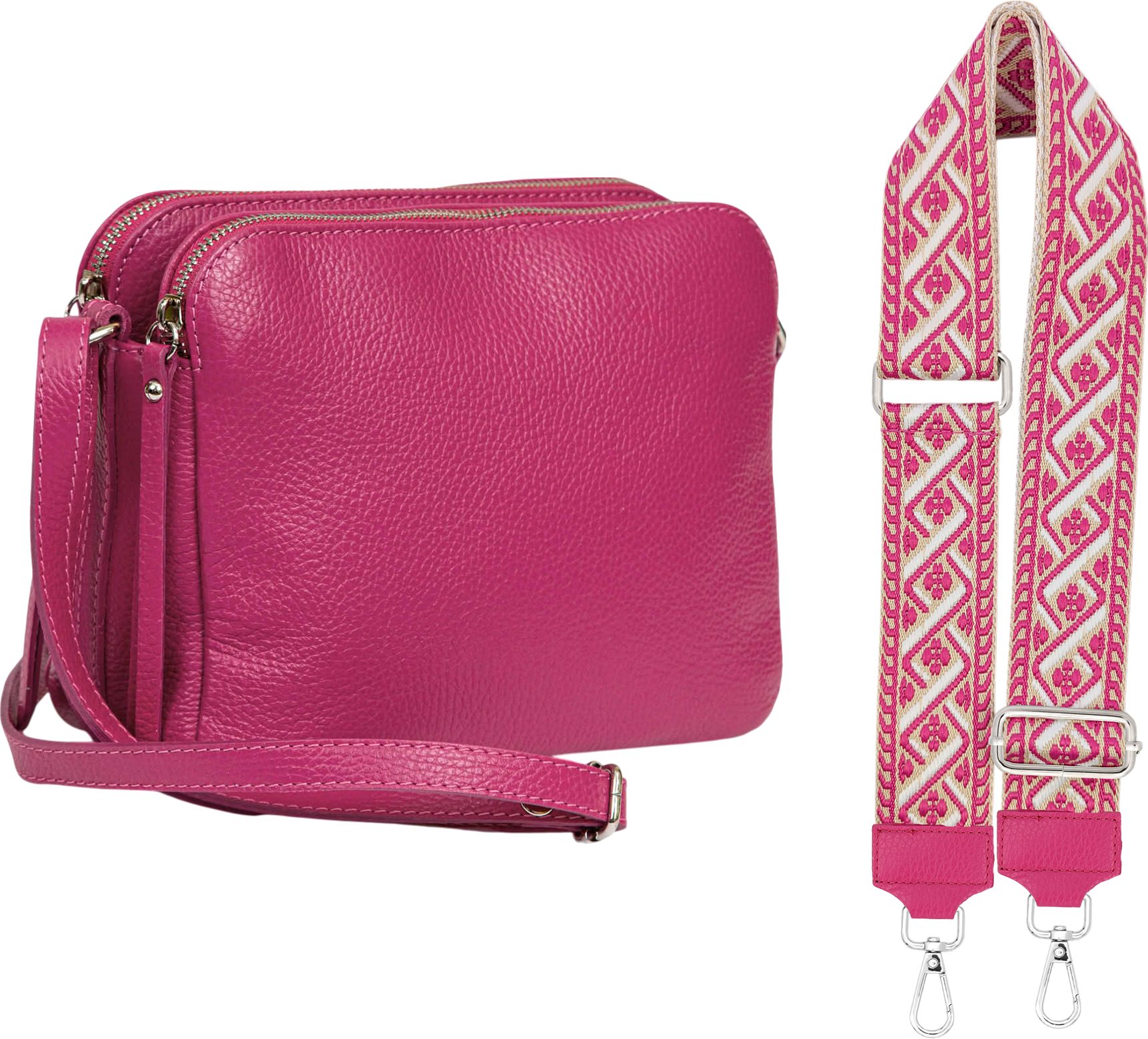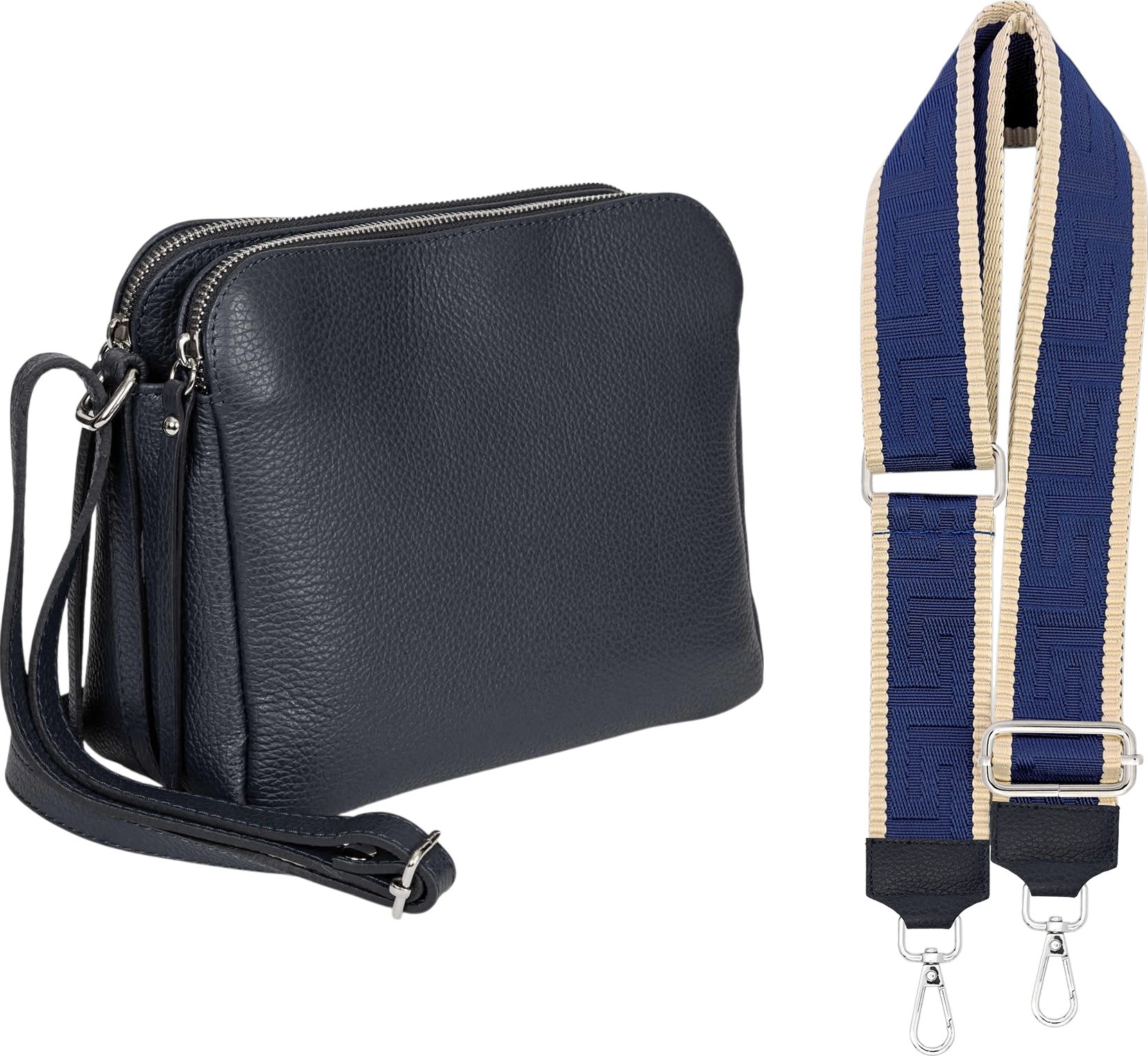 MULTIFUNKTIONALE UMHÄNGETASCHE AUS ECHTLEDER Diese elegante Damenhandtasche verbindet italienische Handwerkskunst mit moderner Funktionalität. Sie wurde aus hochwertigem, echtem Leder gefertigt und besticht durch ihre weiche, seidig-glatte Oberfläche. Ideal geeignet für Alltag, Beruf, Reisen oder besondere Anlässe – stilvoll, vielseitig und langlebig. DURCHDACHTES INNENDESIGN FÜR OPTIMALE ORGANISATION Die Tasche verfügt über insgesamt fünf Fächer: - 1 Hauptfach mit praktischem Magnetknopf - 2 seitliche Hauptfächer mit Reißverschluss - 2 Innentaschen (eine mit Reißverschluss, eine offen) So haben Sie ausreichend Platz für Handy, Geldbörse, Schlüssel, Kosmetik, Sonnenbrille oder Reisedokumente. ZWEI VERSTELLBARE TRAGERIEMEN – OPTIONALER SCHULTERGURT Standardmäßig ist die Tasche mit einem schmalen, klassischen Ledergurt ausgestattet – ideal für einen eleganten Look im Alltag. Auf Wunsch kann ein zusätzlicher, breiter Schultergurt mit stilvollem Muster hinzugefügt werden – für einen modernen, individuellen Stil. Beide Riemen sind verstellbar und bieten flexible Tragemöglichkeiten – ob über der Schulter oder als Crossbody. IDEALE GRÖßE & LEICHTES GEWICHT Die Tasche hat eine kompakte, aber geräumige Form und ist angenehm leicht: - Maße: ca. 24 cm (Breite) x 18 cm (Höhe) x 9 cm (Tiefe) - Gewicht: ca. 544 g Damit eignet sie sich perfekt für den täglichen Gebrauch, ohne zu beschweren. HOCHWERTIGE MATERIALIEN & HERKUNFT - Außenmaterial: 100 % echtes Leder – weich, robust und langlebig - Innenfutter: 100 % Polyester – pflegeleicht und formstabil - Herkunft: Handgefertigt in Italien mit viel Liebe zum Detail STILVOLLES GESCHENK FÜR BESONDERE MENSCHEN Diese Tasche ist mehr als nur ein Accessoire – sie ist ein Ausdruck von Stil, Qualität und zeitloser Eleganz. Ob für Sie selbst oder als Geschenk für Ihre Liebsten – ein echter Hingucker für jeden Anlass. Ideal als Geschenk für Frauen, die Wert auf Qualität und Design legen – perfekt zu Anlässen wie Geburtstag, Weihnachten, Valentinstag oder Muttertag.