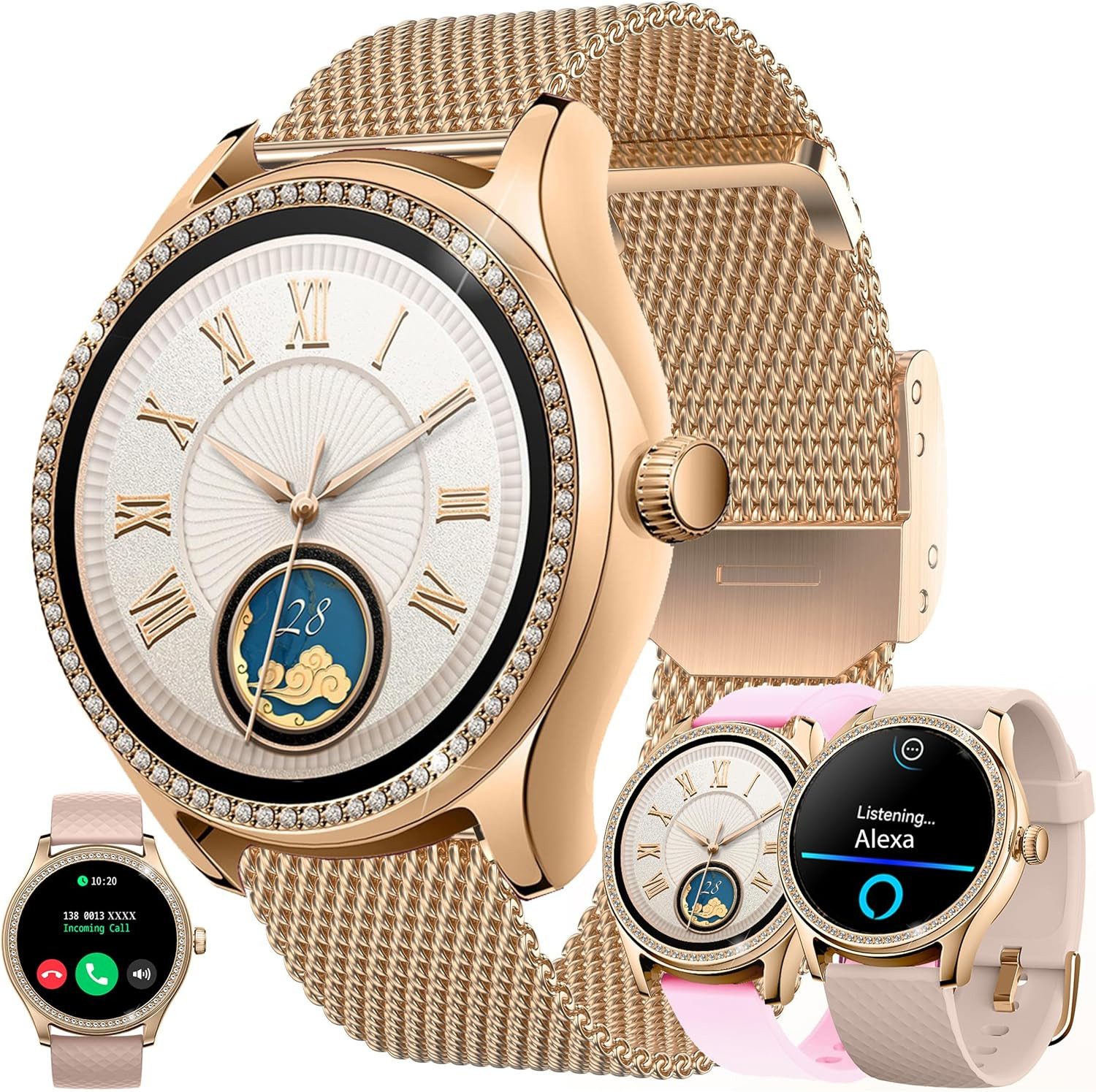 Zusatzfunktionen | smartwatch mit alexa sprachsteuerung smartwatch damen mit diamanten 1.38 zoll smartwatch display fitnessuhr mit telefonfunktion gesundheitsuhr mit zyklusfunktion uhr mit schlaf- und herzfrequenzanalyse smartwatch mit wechselarmbändern smartwatch kompatibel mit android ios smarte damenuhr mit sprachsteuerung luxuriöse smartwatch für frauen smartwatch mit blutdruckmessung sport smartwatch mit app-anbindung elegante fitness tracker damen lange akkulaufzeit smartwatch |