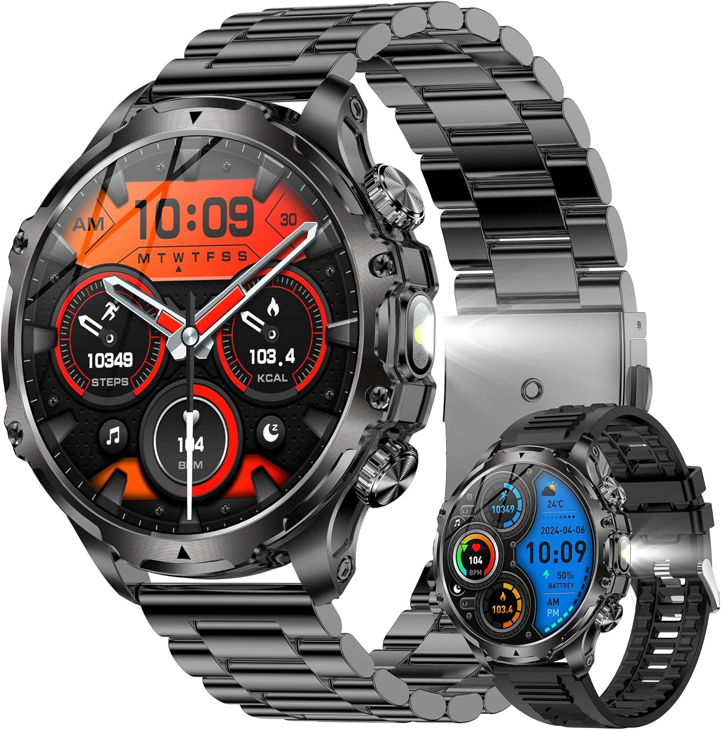| Zusatzfunktionen | Smartwatch mit 1.85 Zoll Bildschirm Smartwatch mit AMOLED Display Smartwatch mit Edelstahl und Silikonarmband Smartwatch mit personalisierbarem Zifferblatt Smartwatch mit Bluetooth Telefonie Smartwatch mit Schlafanalyse Herren Smartwatch mit App Benachrichtigung Smartwatch mit Musiksteuerung Herren Smartwatch mit 100 Sportmodi Smartwatch mit 5ATM Wasserschutz Smartwatch mit 800 mAh Akku Smartwatch mit Schrittzähler und Kalorienverbrauch Smartwatch mit Schnellladefunktion Smartwatch kompatibel mit iOS und Android |