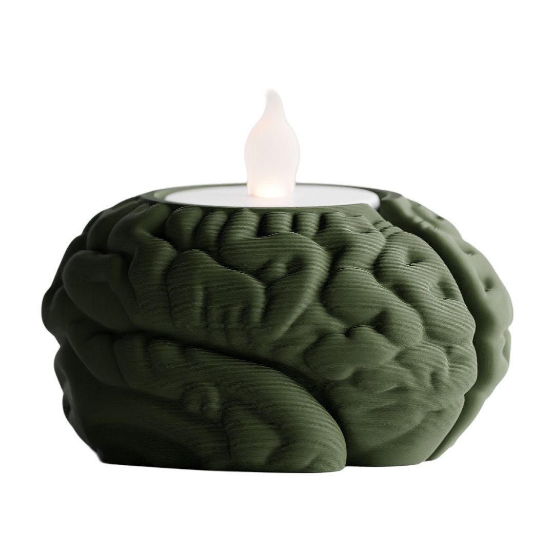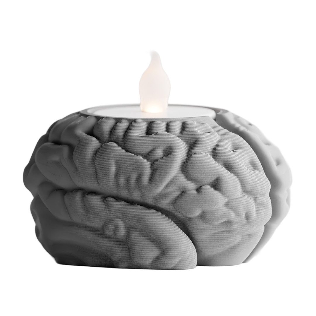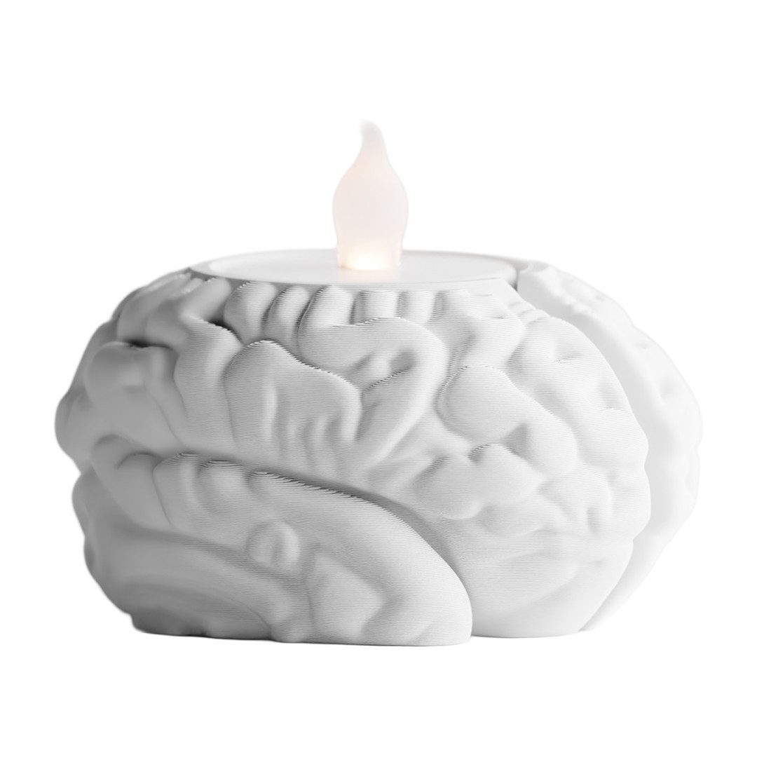 AUSSERGEWÖHNLICHES DESIGN: Teelichthalter im detailreichen Gehirn-Look – ein echter Hingucker für alle, die Halloween-Deko mit Charakter lieben.