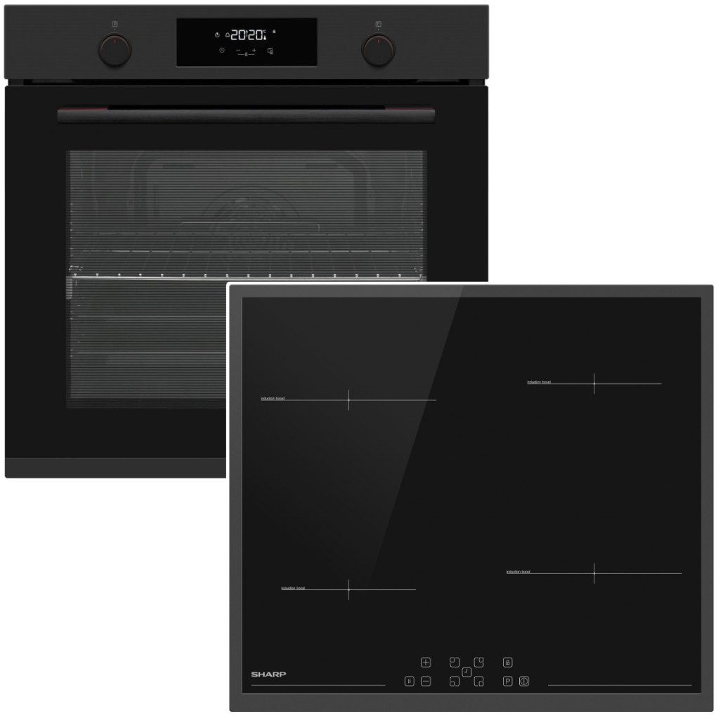 SHARP Backofen Set 78 Liter Matt Black mit Induktionskochfeld 60 cm PowerBoost AutoHeatControl