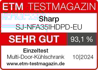 Der freistehende Multi Door Kühlschrank »SJ-NFA35IHDPD-EU« ist von der Marke Sharp. Das Modell bietet ausreichend Platz für deinen Einkauf durch seine Maße von 84 x 179 x 69 cm (B/H/T) und das Gefriervolumen von 166 l und Kühlvolumen von 322 l. Das Betriebsgeräusch des Modells liegt bei 39 dB. Die Bildung von Eiskristallen wird durch die No Frost-Funktion verhindert – so muss das Gerät nie wieder abgetaut werden. Das Modell besitzt vier Gefrierschubladen und zwei Gemüseschubladen. Auf dem außen installierten Display kann die genaue Temperatur im Gerät abgelesen werden. Auf drei Ablageflächen, davon zwei höhenverstellbar, ist im Multi Door Kühlschrank viel Platz für Lebensmittel. Schnell griffbereit sind Lebensmittel in den sechs Türablagen. Всеs im Blick hat man außerdem dank der LED-Innenbeleuchtung. Für diejenigen, die auf der Suche nach einem Multi Door Kühlschrank sind, ist der »SJ-NFA35IHDPD-EU« von Sharp eine gute Wahl.