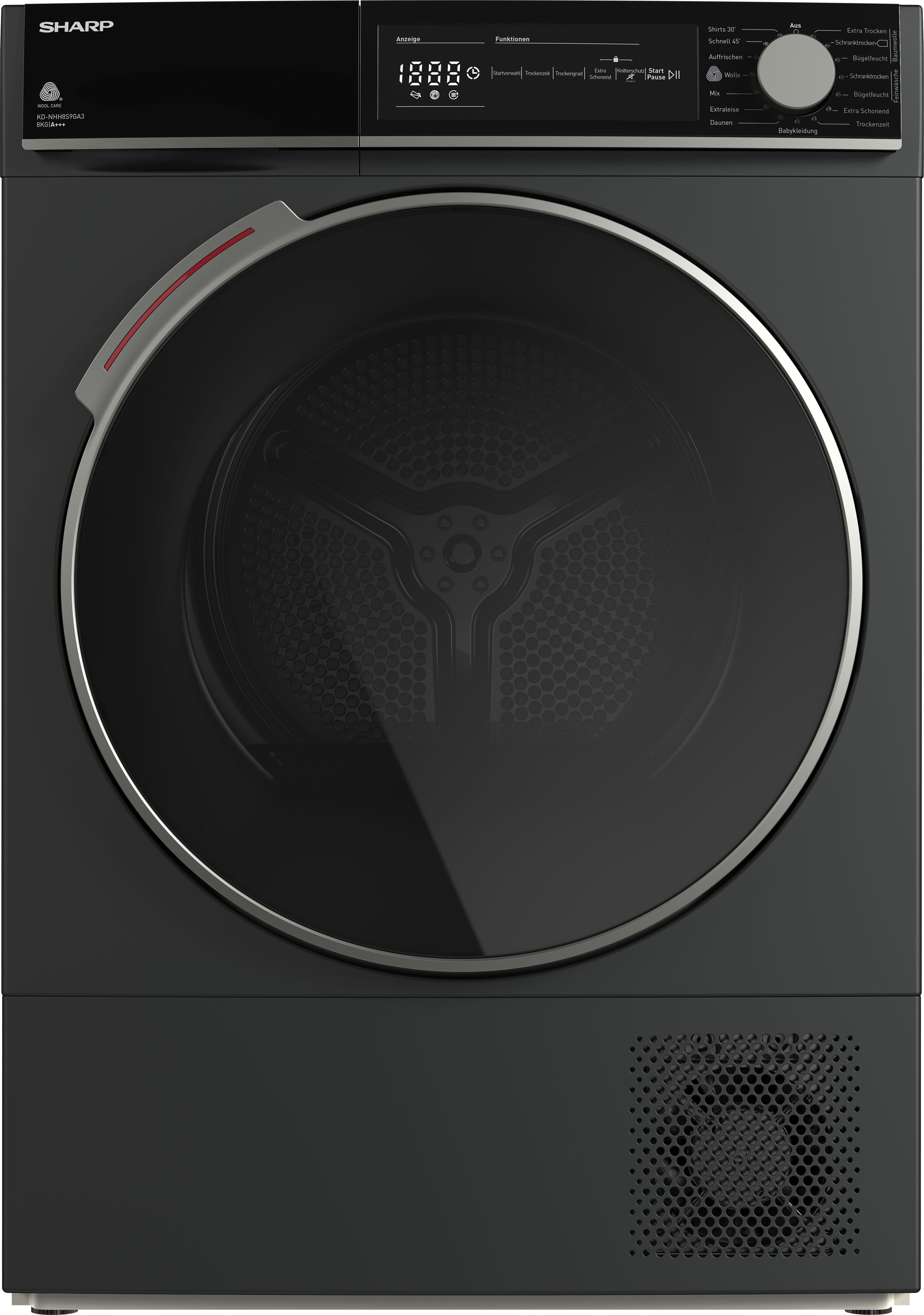 Der Wärmepumpentrockner KD-NHH8S9GA3-DE von Sharp brilliert durch eine überzeugende Ausstattung. Ausgezeichnet mit der Energieeffizienzklasse C (Skala: A bis G) fällt der Energieverbrauch dieses Wärmepumpentrockners äußerst gering aus. Der Wärmepumpentrockner eignet sich vor allem für Haushalte mit bis zu 4 Personen, da dieser 8 kg Fassungsvermögen hat. Mithilfe der Startzeitvorwahl ist es möglich, das Programm des KD-NHH8S9GA3-DE Wärmepumpentrockners so einzuspeichern, dass die Wäsche fertig ist, wenn man zum Beispiel von der Arbeit nach Hause kommt. Mithilfe der Restlaufanzeige ist jederzeit ersichtlich, wie viel Zeit vom Wärmepumpentrockner noch für den laufenden Trockengang gebraucht wird. Eine hohe Lebensdauer verspricht die Edelstahltrommel des KD-NHH8S9GA3-DE Wärmepumpentrockners. Durch die Innenbeleuchtung hat man beim Befüllen und Entleeren immer alle Kleidungsstücke im Blick. Außerdem lässt sich der KD-NHH8S9GA3-DE Wärmepumpentrockner durch eine Kindersicherungsfunktion sperren. Die Abmessungen des Wärmepumpentrockners betragen 59,6 cm x 84,5 cm x 60,9 cm (BxHxT).