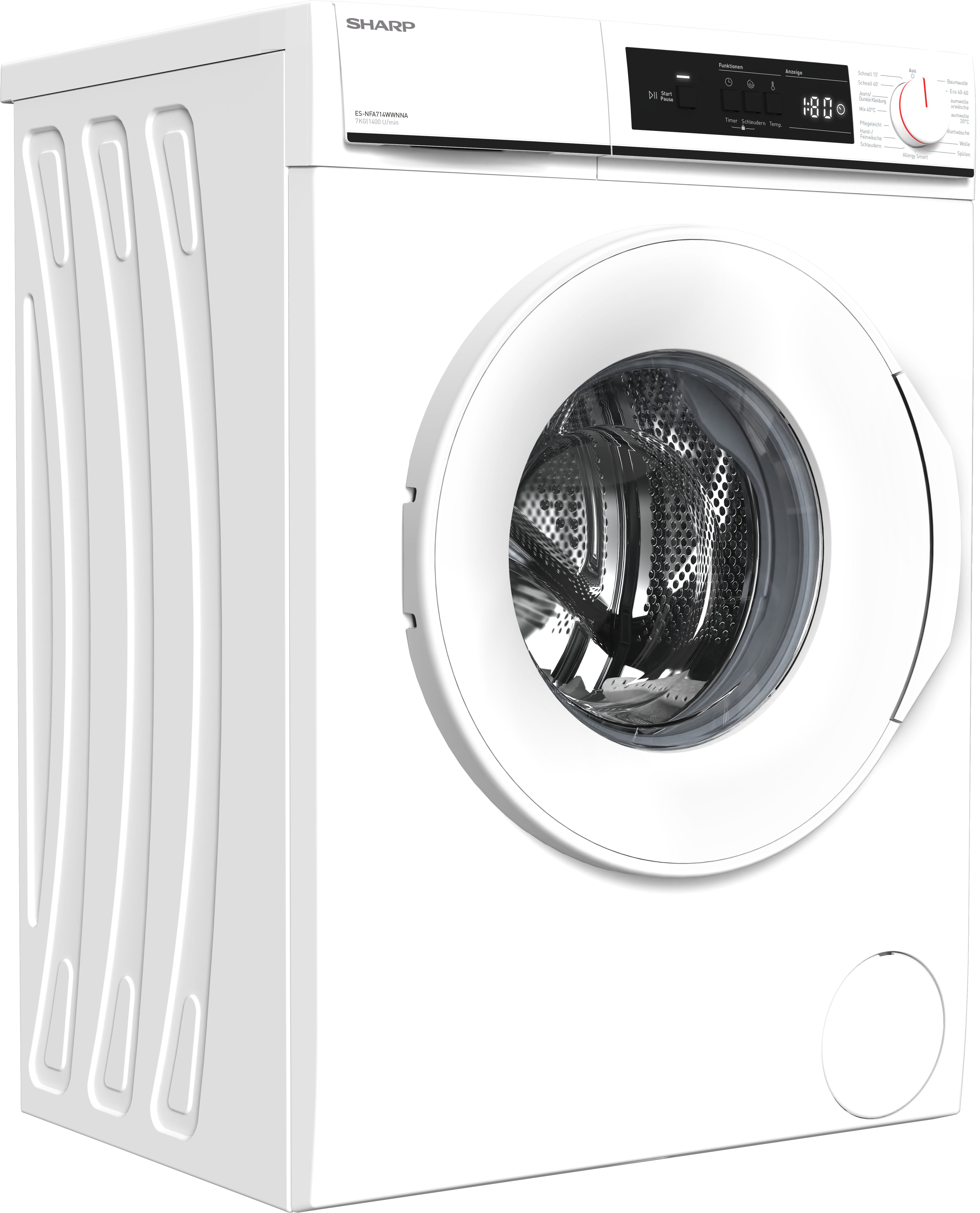 Die Waschmaschine ES-NFA714WWNNA-DE von Sharp brilliert durch eine überzeugende Ausstattung. Ausgezeichnet mit der Energieeffizienzklasse A (Skala: A bis G) fällt der Energieverbrauch dieser Waschmaschine äußerst niedrig aus. Die Kapazitätsanforderungen von 2- bis 3-Personenhaushalten stellen mit einem 7 kg Fassungsvermögen kein Problem dar. Zusätzlich bietet die ES-NFA714WWNNA-DE Waschmaschine unter anderem diese Besonderheiten: AquaStop und Schaumsensor. Ist einmal zu viel Waschmittel in der Trommel, reagiert die Schaumerkennung und legt einen extra Spülgang ein. So bleiben keine Rückstände in Ihren Textilien. Anhand der Startzeitvorwahl lässt sich individuell einstellen, wann die ES-NFA714WWNNA-DE Waschmaschine mit dem Waschgang starten soll. Die übrige Programmdauer wird auf der Restlaufanzeige dargestellt. So weiß man jederzeit, wie lange die Waschmaschine noch für den Waschgang braucht. Für die Sicherheit der kleinsten Familienmitglieder ist an der ES-NFA714WWNNA-DE Waschmaschine eine Kindersicherung vorhanden. Die Abmessungen der Waschmaschine betragen 59,7 cm x 84,5 cm x 49,7 cm (BxHxT).