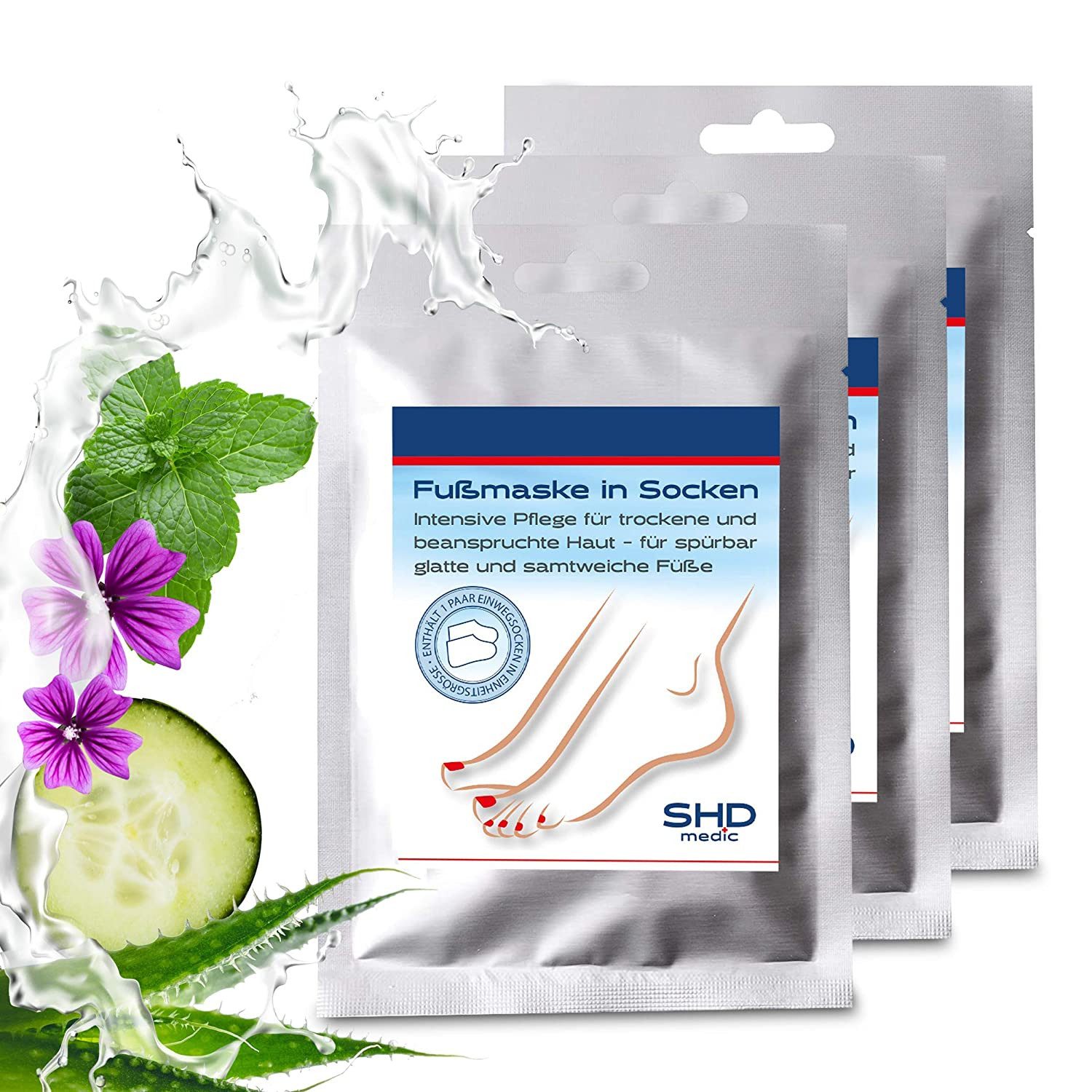 Die Fußmaske in Socken bietet eine intensive Pflege für strapazierte Füße. Dank natürlicher Inhaltsstoffe wie Gurke, Melisse und Aloe Vera wird die Haut beruhigt und geschmeidig weich. Durch die praktische Einzelverpackung ist sie perfekt für unterwegs. Gönnen Sie Ihren Füßen eine Auszeit!