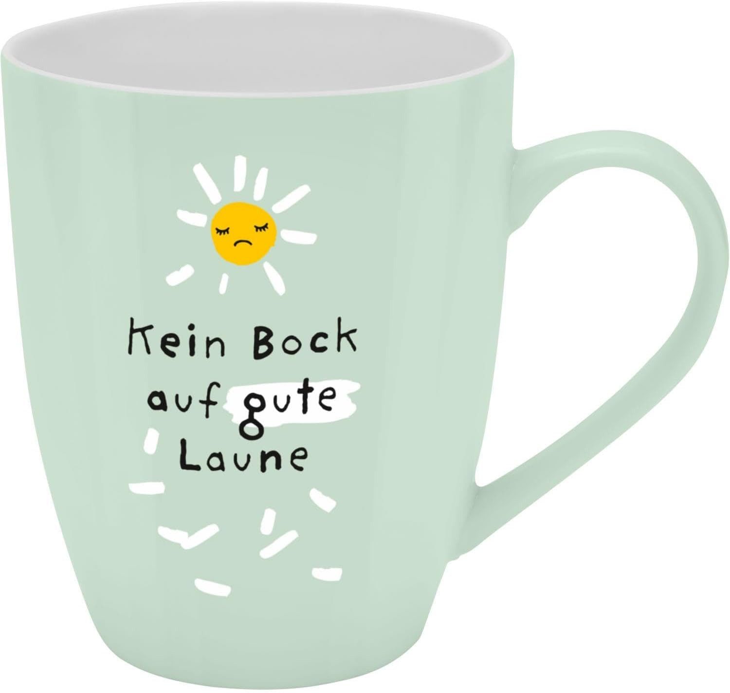 KAFFEEBECHER MIT SPRUCH: Herrlich böser Becher, Tasse aus New Bone China Porzellan, Volumen 35 cl, mit Geschenkbanderole und Spruch "Kein Bock auf gute Laune".