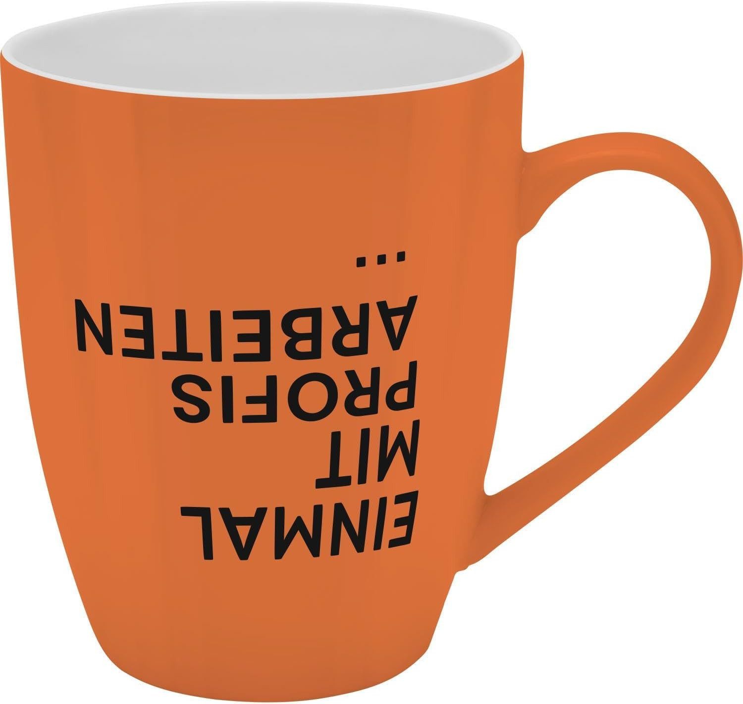 BÖSER BECHER MIT SPRUCH: Herrlich böser Becher, Tasse aus New Bone China Porzellan, Volumen 35 cl, mit Geschenkbanderole und Spruch "Einmal mit Profis arbeiten".