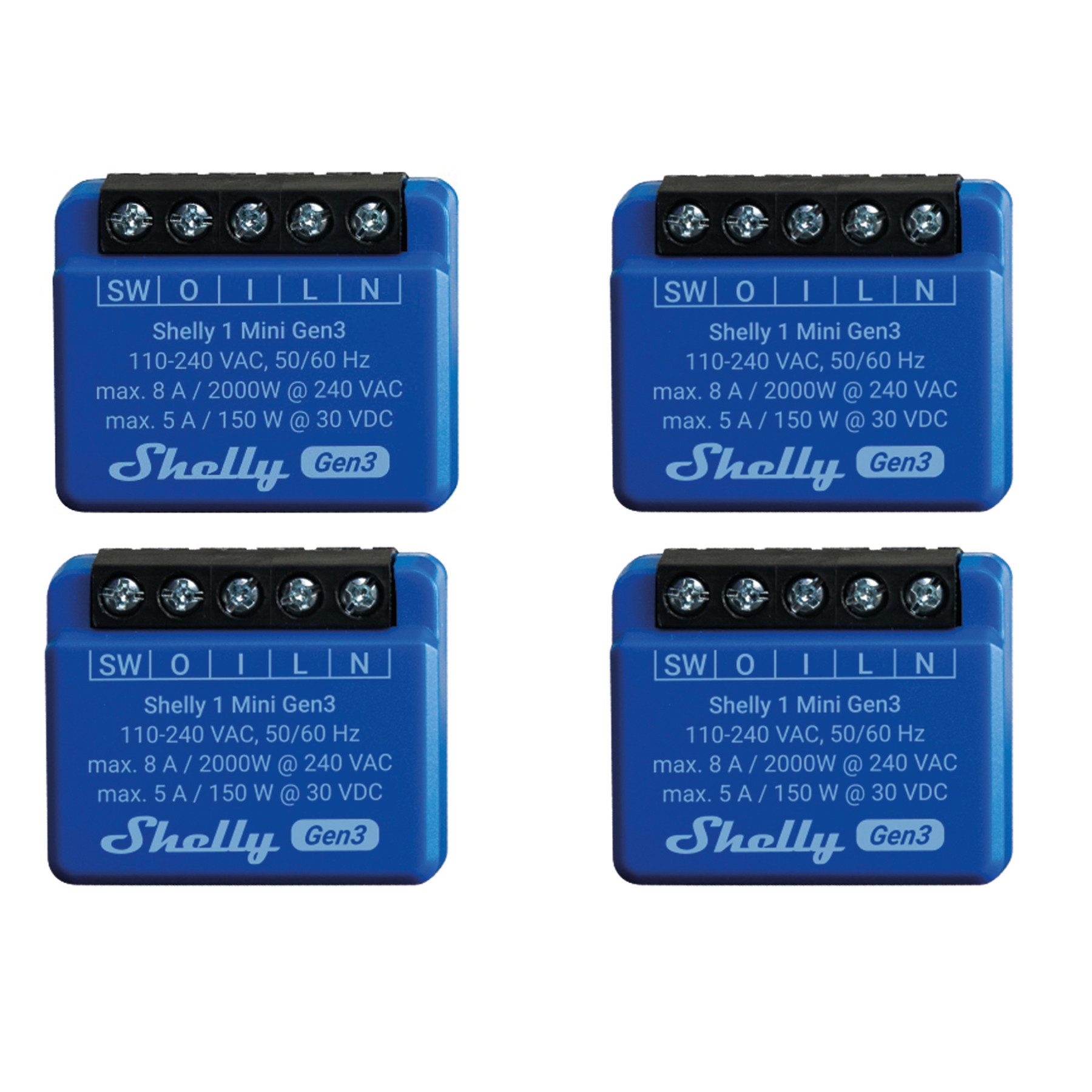 SHELLY WLAN-Schaltaktor 1 Mini Gen 3, blau, 4 Stück Unterputzschalter