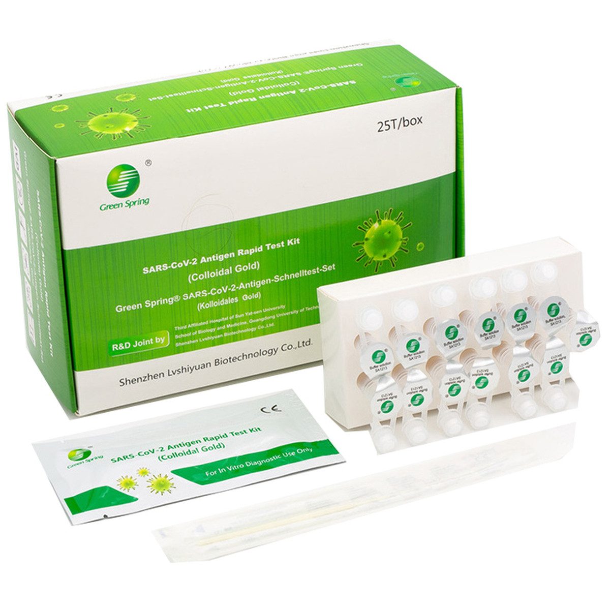 Green Spring® SARS-CoV-2-Antigen-Schnelltest-Set (kolloidales Gold) 4in1 (Nase-Rachen, Nasal, Rachen, Lolli-Test)