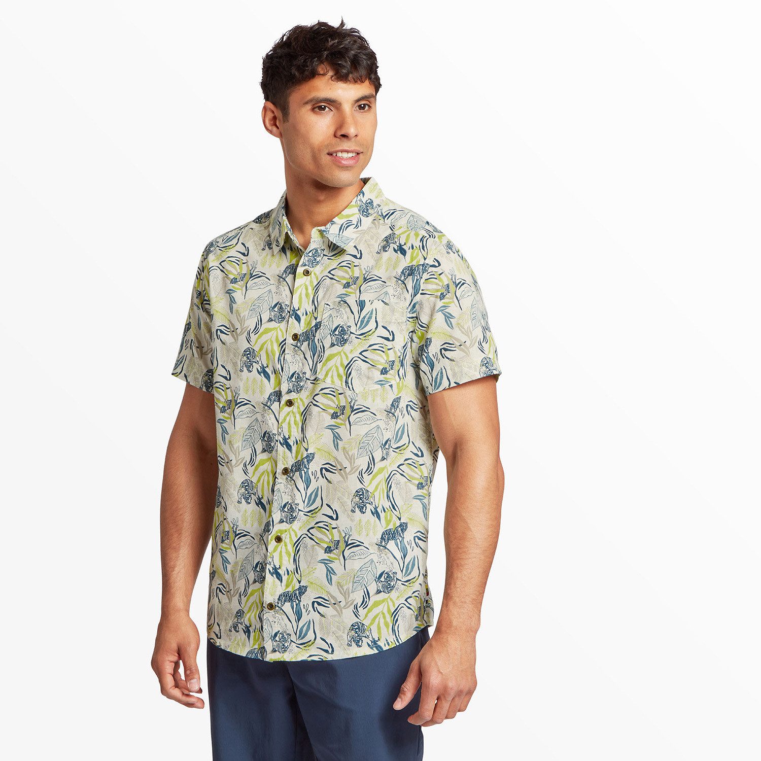 Das, von den Blättern des Tigerbaums inspirierte Design lässt das schmal geschnittene Tiger Leaf SS Shirt Men zu einem Hingucker werden. So bist Du mit Stil im Alltag, auf Reisen oder in der Freizeit unterwegs. Mit vorgezogenen Schulternähten, einer Brusttasche, HolzimitatKnöpfen und einer Rückenpasse mit Doppelfalte bietet Dir dieses Hemd angenehmen Tragekomfort, gute Feuchtigkeitsregulierung und Funktionalität.