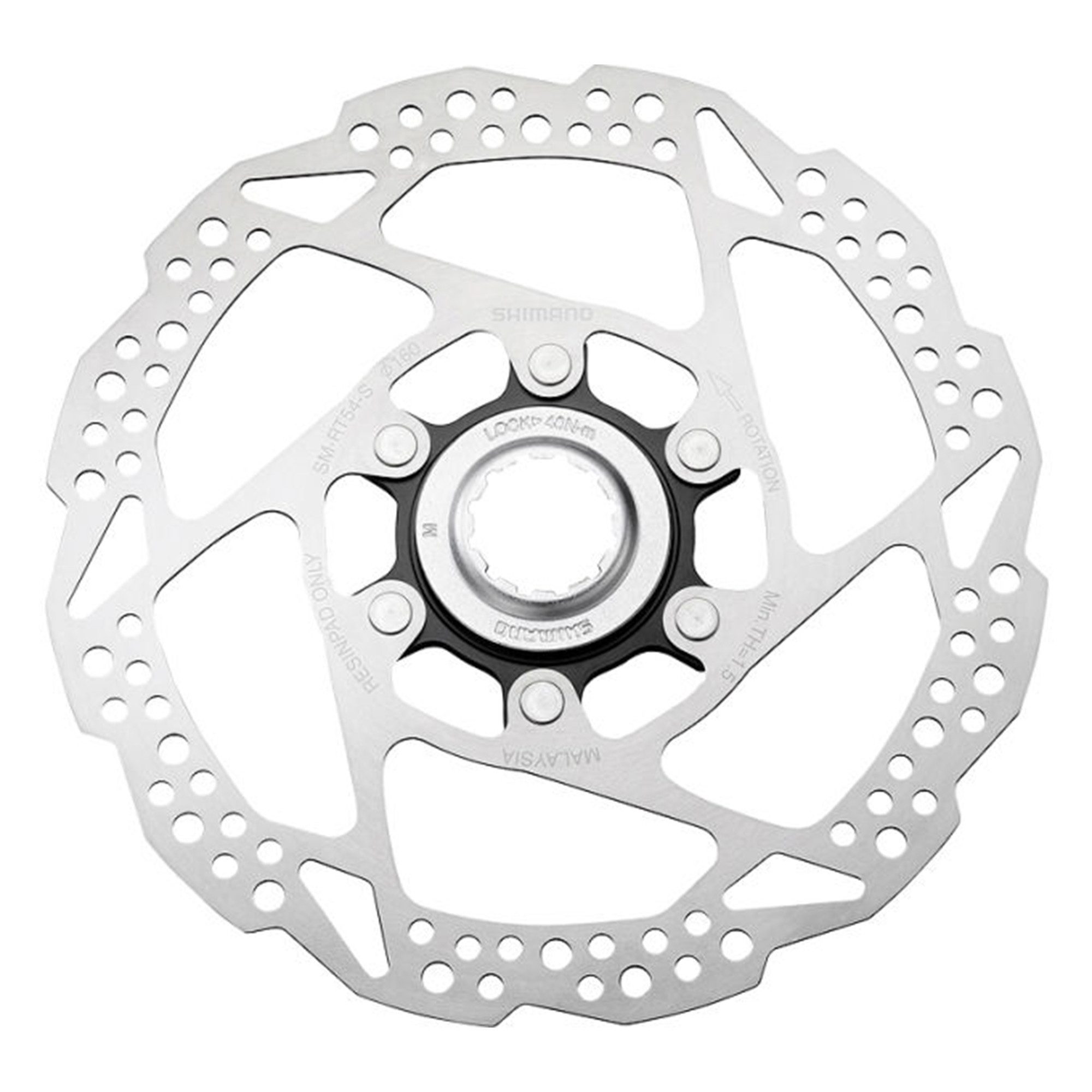 Die Shimano SM-RT54 Bremsscheibe, erhältlich mit 160 oder 180 mm Durchmesser, leistet optimale Bremskraft bei allen Fahrbedingungen. Die Scheibe lässt sich dank Center-Lock Befestigung und Verschlussring einfach und schnell mittels Sicherungsring montieren.