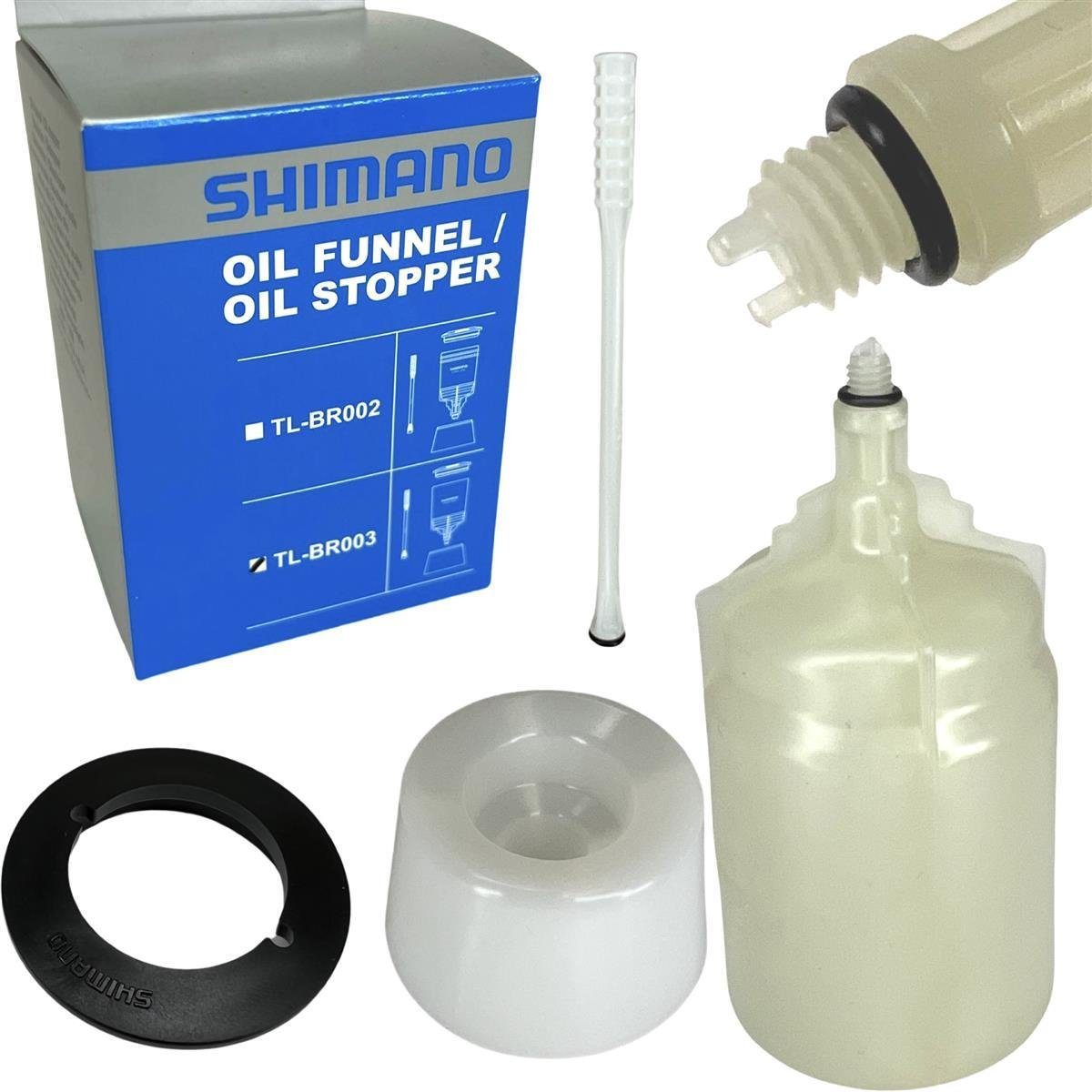 Praktischer Öl-Trichter von SHIMANO für ST Schalt-/Bremshebel mit M7 Gewinde. Beim Befüllen und Entlüften von Road-Scheibenbremssystemen dient der schraubbare Aufsatz als Füll- und Ausgleichsbehälter für das eingefüllte Mineralöl. Der Öl-Stopper kann bei Öffnung in den Trichterring eingehängt werden und verschießt mit seiner Dichtung die Füllöffnung nach Gebrauch - für sauberes Arbeiten. Nach dem Einsatz findet der Trichter auf dem Standsockel einen kippsicheren Abstellplatz.