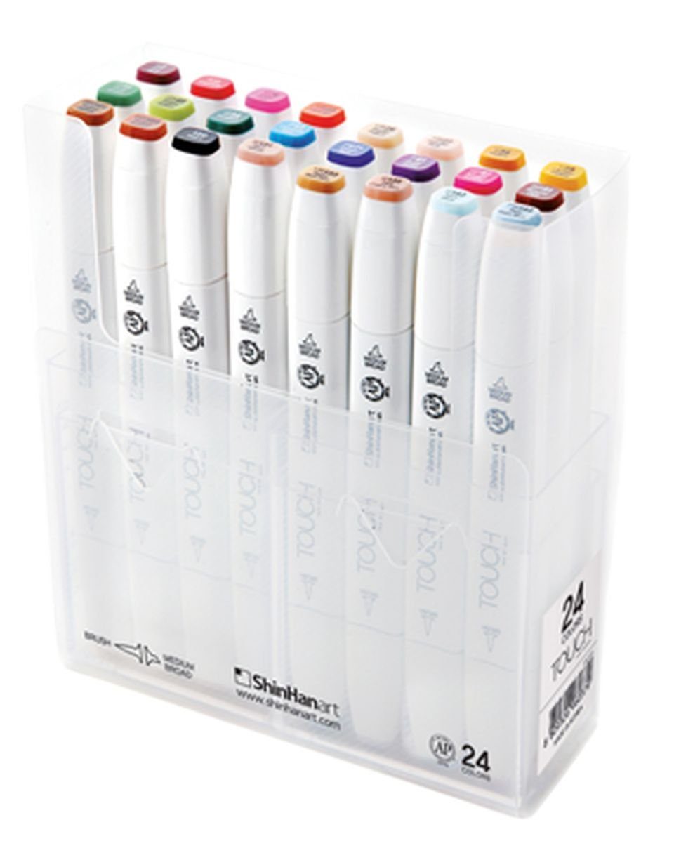 Der TOUCH BRUSH Marker überzeugt durch seine qualitativ hochwertig gearbeitete Pinselspitze. Seine exible Pinselspitze und die 5 mm medium-broad Meißelspitze eignen sich hervorragend für Illustrationen, Modedesign, Manga-Zeichnungen, Kolorierung oder einfache Skizzen. Schwungvolles Malen und präzises Arbeiten gelingt mit der TOUCH Pinselspitze. Die verbesserte Faserstruktur sorgt für eine robuste und langlebige Pinselspitze, die sich auch nach intensivem Gebrauch nicht verformt. Beide Spitzen können problemlos ausgetauscht werden. Zudem sorgt die „True-Color-Cap“ für eine deutliche Farbauszeichnung. Die flexible Pinselspitze ist besonders stabil und bleibt in Ihrer Rückstellkraft langlebig. Die besondere Faser ermöglicht einen gleichbleibenden Tintenfluss bis in die Spitze auch bei hoher Belastung. Unsere speziellen innovativen Microfasern aus Polyester bringen einen kontrollierten und exakten Farbfluss aufs Papier. Mit nur wenig Druck auf die Spitze kann so leicht und sauber auf fast allen Oberflächen gezeichnet werden. Auch die Meisselspitze des TOUCH BRUSH Markers hat spezielle abgeschrägte Winkel an den Aussenkanten. Dadurch erhält der Stift seine hohe Präzision und gibt dem Anwender die Möglichkeit durch Veränderung des Anstellwinkels die Stichbreite zu variieren.