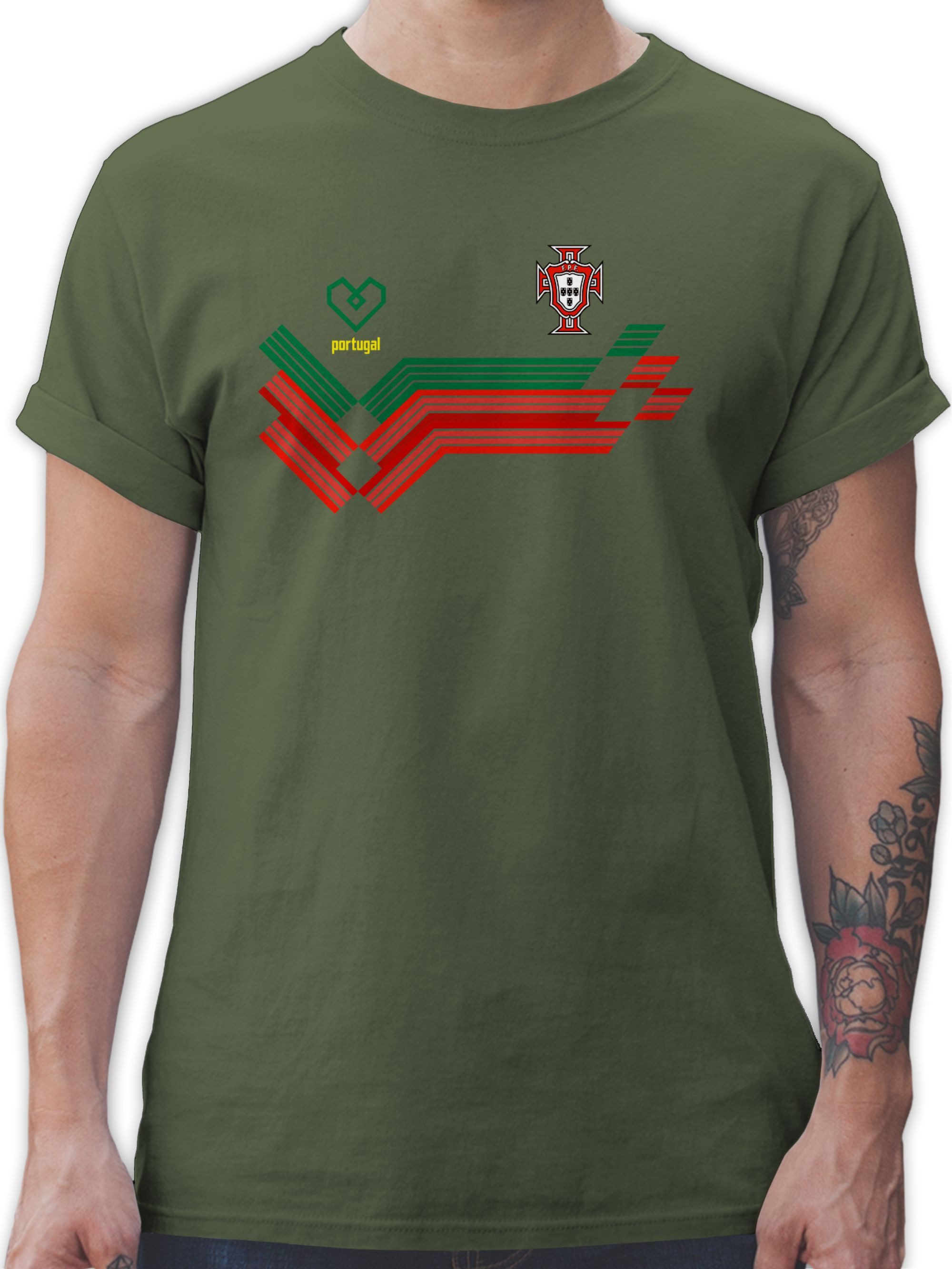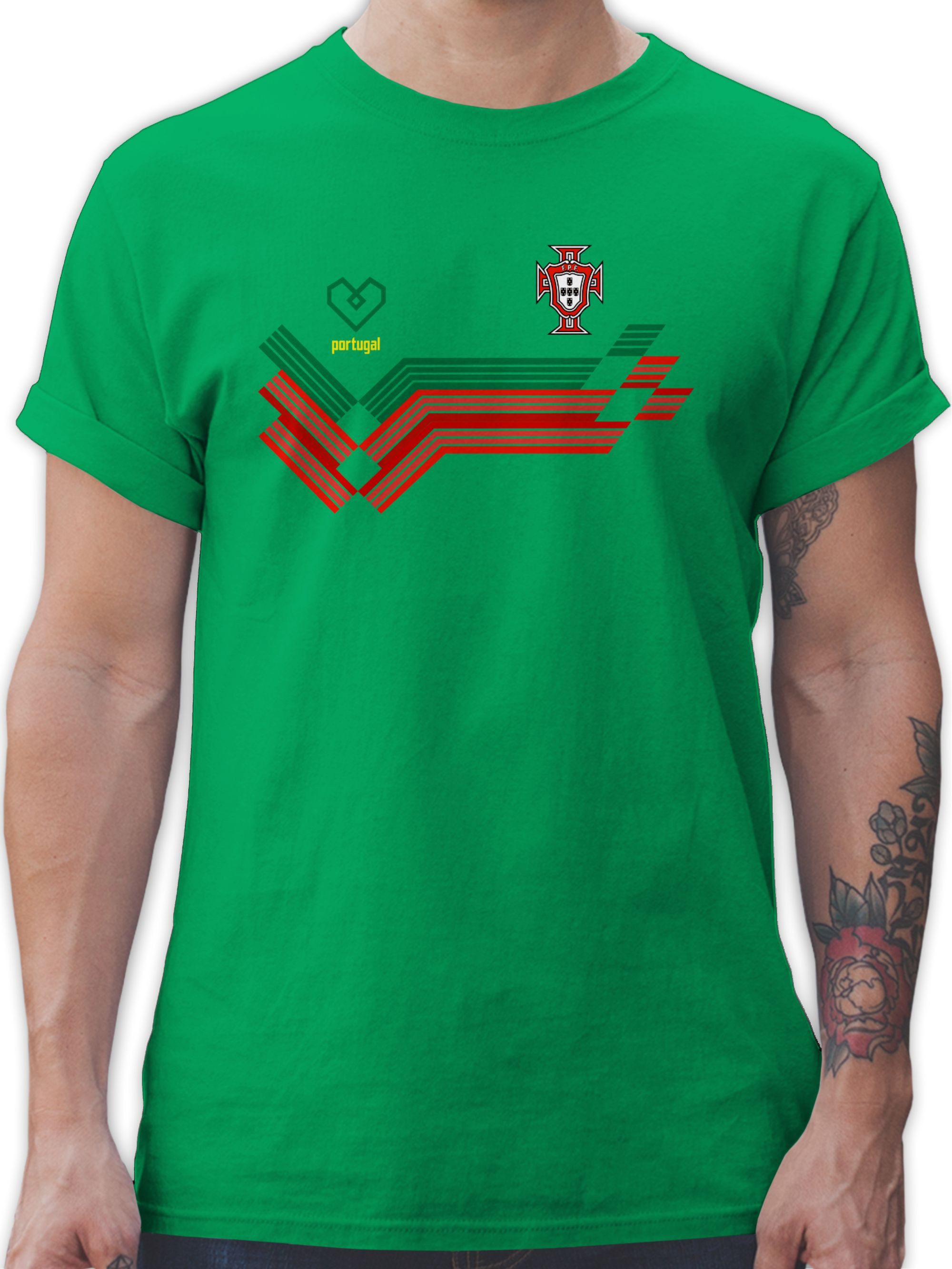 GESCHENK FÜR PORTUGAL-FANS: Dieses Motiv mit Streifen, Herz und Portugal-Wappen ist optimal wenn du auf der Suche nach " fussball fan trikot " warst
