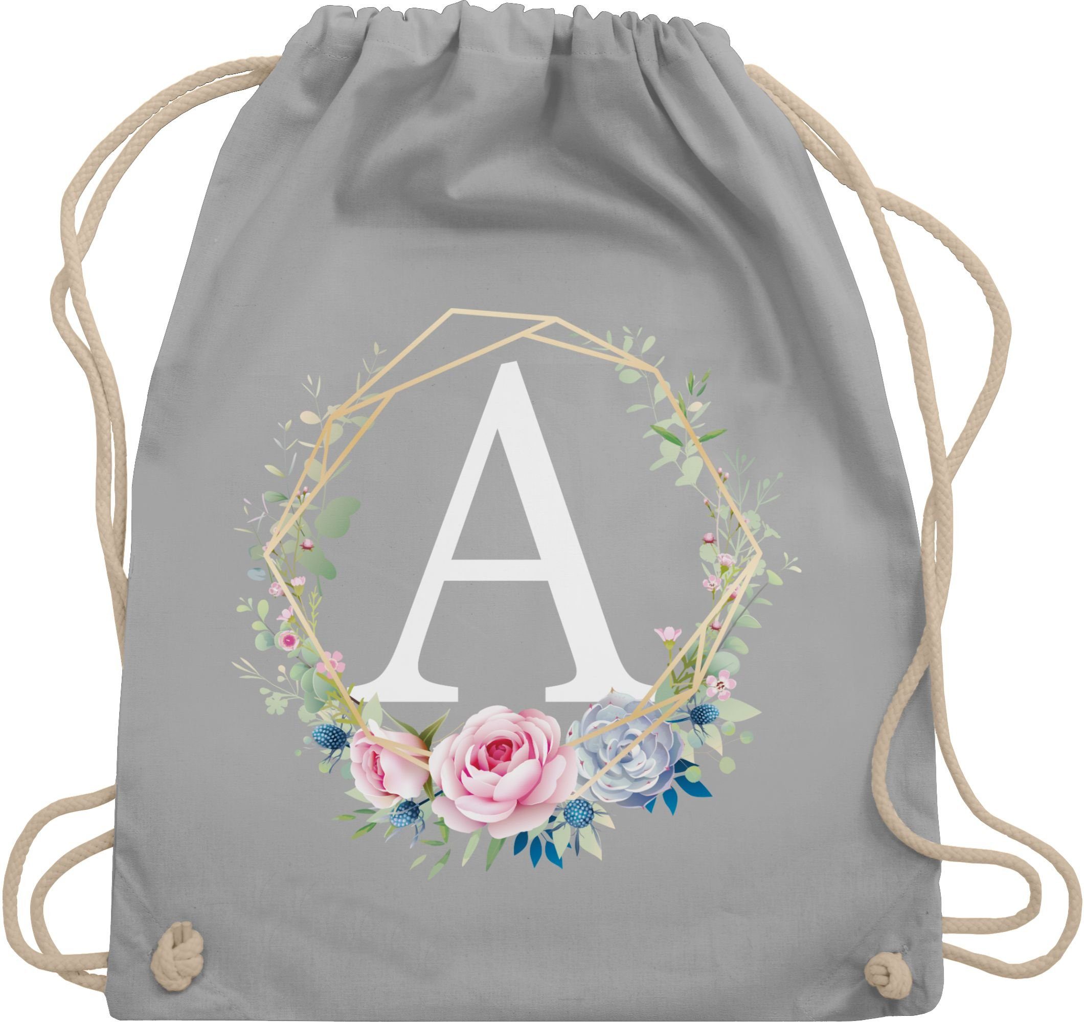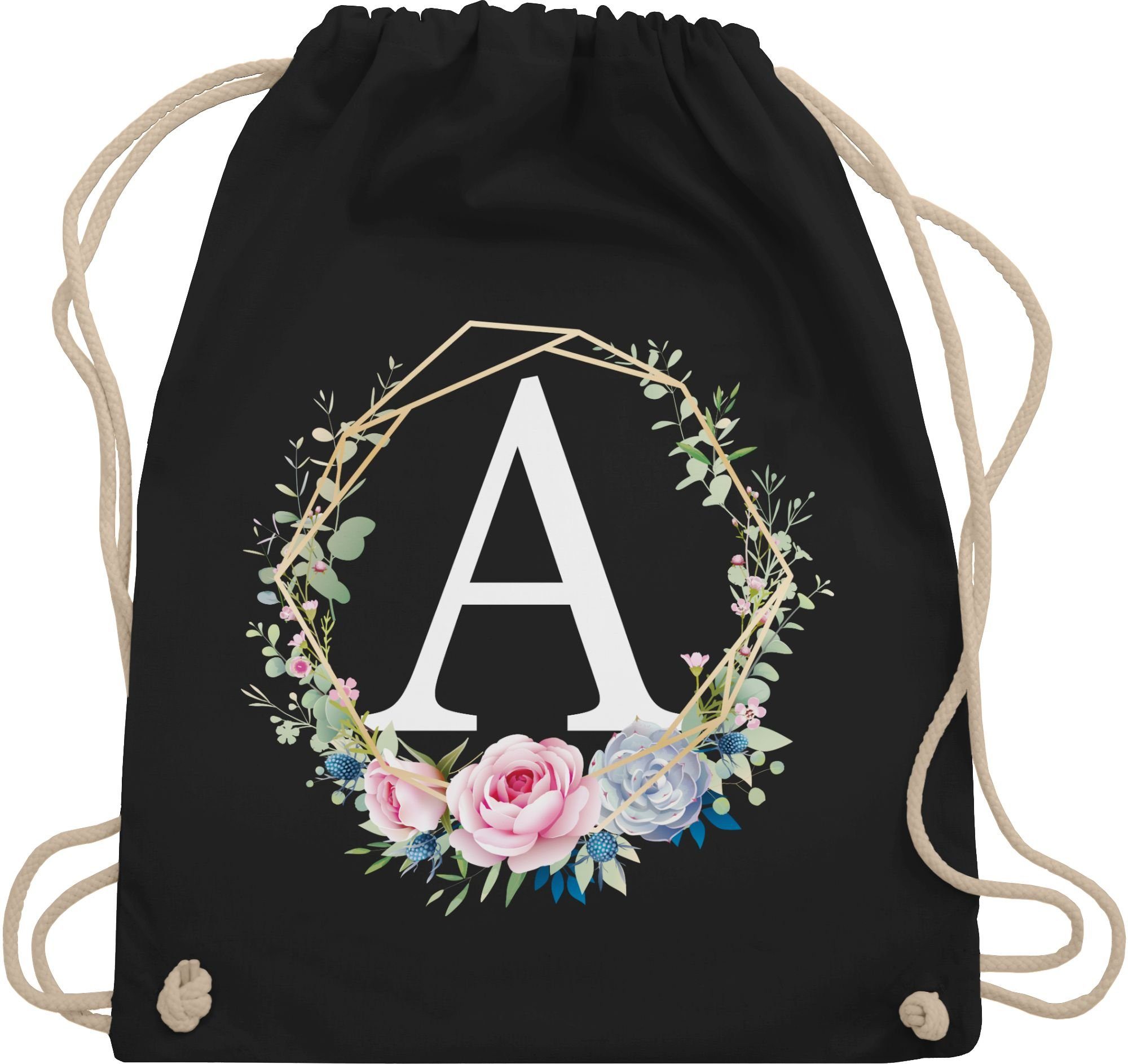 Shirtracer Turnbeutel Blumenkranz Mit Buchstabe A, Geschenk Taschen Initialen Shopper Baumwolle