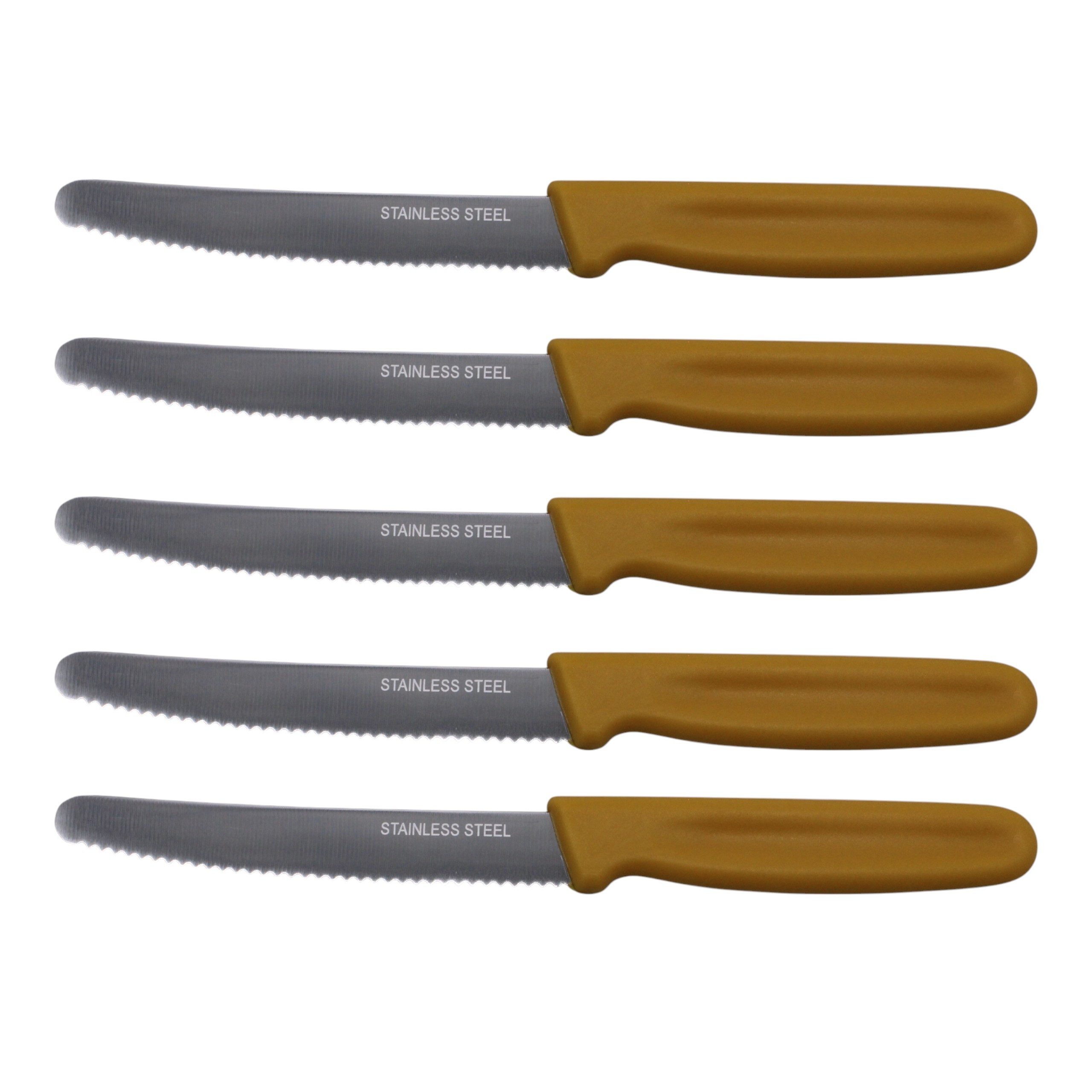 Die Klinge des Messers ist auf Langlebigkeit ausgelegt, da Edelstahl besonders resistent gegen Rost und Flecken ist. Dank der gezackten Schneide bleibt das Messer länger scharf, was den Pflegeaufwand minimiert und auch nach vielen Anwendungen eine gleichbleibende Schneidleistung bietet. Die scharfen Zacken machen es auch zum idealen Allzweckmesser für alle Arten von feinen Schneidarbeiten, sei es das Schneiden von kleinen Früchten, Käse oder Wurstwaren.