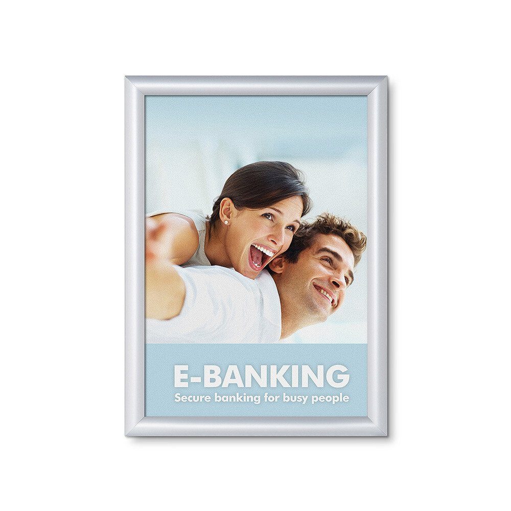 Sorgen Sie dafür, dass Ihr Klapprahmen sichtbar und sicher ist - mit dem feuerfesten 32 mm Klapprahmen. Ein hochwertiger Aluminium-Klapprahmen mit einer B1-Brandschutzzertifizierung. Dank der Konstruktion des Klapprahmens können Sie Ihr Poster einfach austauschen, ohne den Rahmen von der Wand zu nehmen. Wählen Sie zwischen Gehrungs oder Rundecken. Ideal für den Einsatz in Schulen, im Gastgewerbe, in öffentlichen Gebäuden und Behörden.