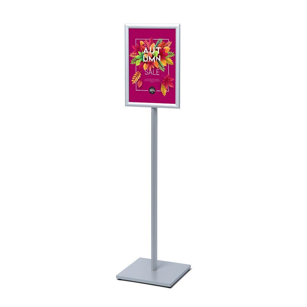 Der Showdown Infoständer überzeugt durch sein hochwertiges Design mit einem lasergeschnittenen, pulverbeschichteten Stahlsockel und einer silber-eloxierten Aluminiumsäule sowie einem Aluminiumrahmen. Die doppelseitige Präsentationsmöglichkeit ermöglicht es, Ihre Botschaft optimal zur Geltung zu bringen.