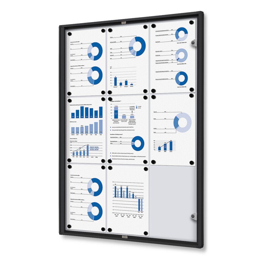 Präsentieren Sie Ihre Speisekarte und Preise auf dem abschließbaren Innenschaukasten Economy. Dieser hochwertige Schaukasten verfügt über eine Stahlrückwand, die die Verwendung von Markierstiften und Magneten ermöglicht. Die abschließbare Flügeltür wird mit 2 Schlüsseln geliefert. Der Schaukasten ist in verschiedenen Größen erhältlich und kann an der Wand montiert werden. Optional ist er auch mit Feuerschutz erhältlich. Die auf Gehrung geschnittenen Ecken verleihen ihm ein ansprechendes Design. Der Schaukasten eignet sich perfekt für den Einsatz in Schulen, Büros, Restaurants oder öffentlichen Räumen.