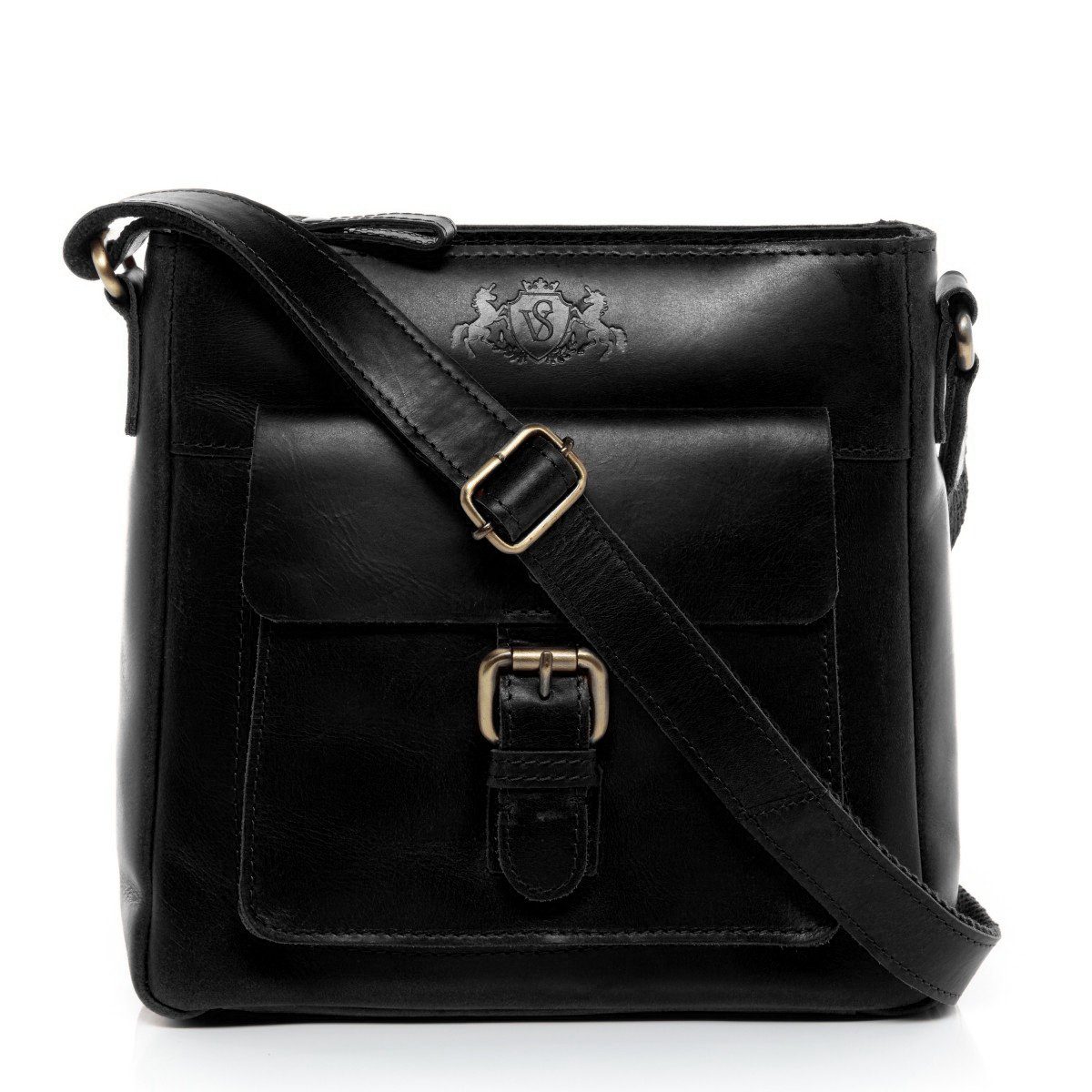 Besondere Merkmale | Ledertasche Schultertasche Herren Damen Messenger Bag schwarz |