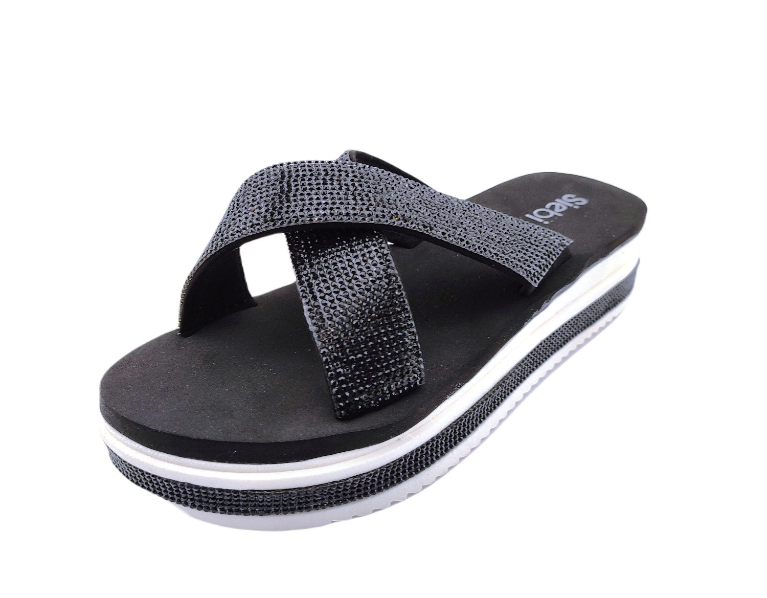 Besonders bequem und leicht und flexibel ist dieses modische Strand-und Badeschuh. Das Obermaterial mit Glitzersteinen und der Plateausohle machen diesen schönen Schuh zum Hingucker. Auch für längere Wege geeignet. Ob auf Sand oder Kies, mit diesem Modell ist jeder Weg passierbar. Auch für Unterwegs durch seine Leichtigkeit bestens für den Transport im Handgepäck zu verstauen. Dieses Modell spiegelt die aktuelle Sommer und Strandmode wider.