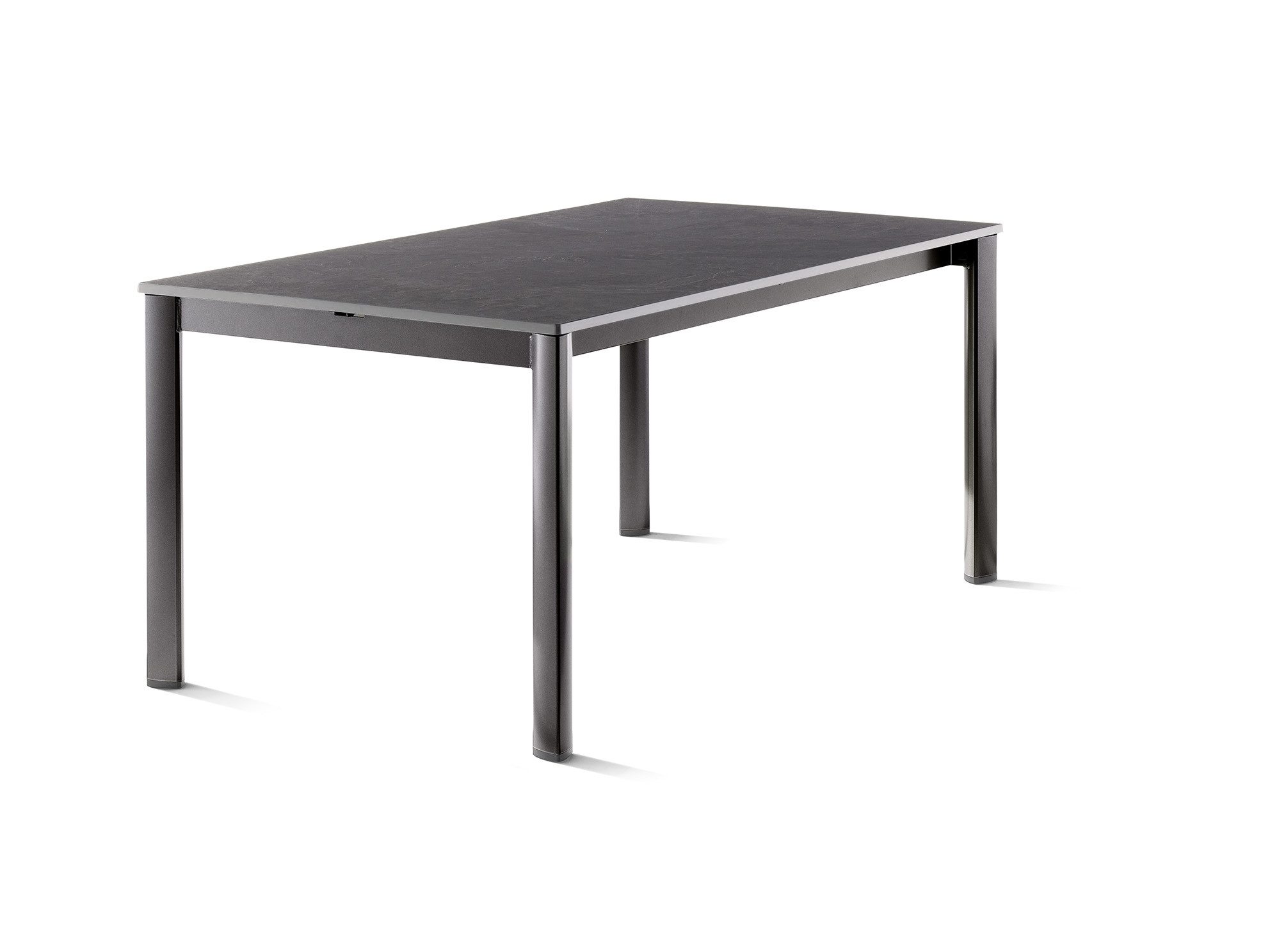 Hochwertige Materialien: Die Tischplatte besteht aus robustem vivodur ® in der Farbe Schiefer anthrazit, während das Gestell aus stabilem Aluminium in Eisengrau gefertigt ist.