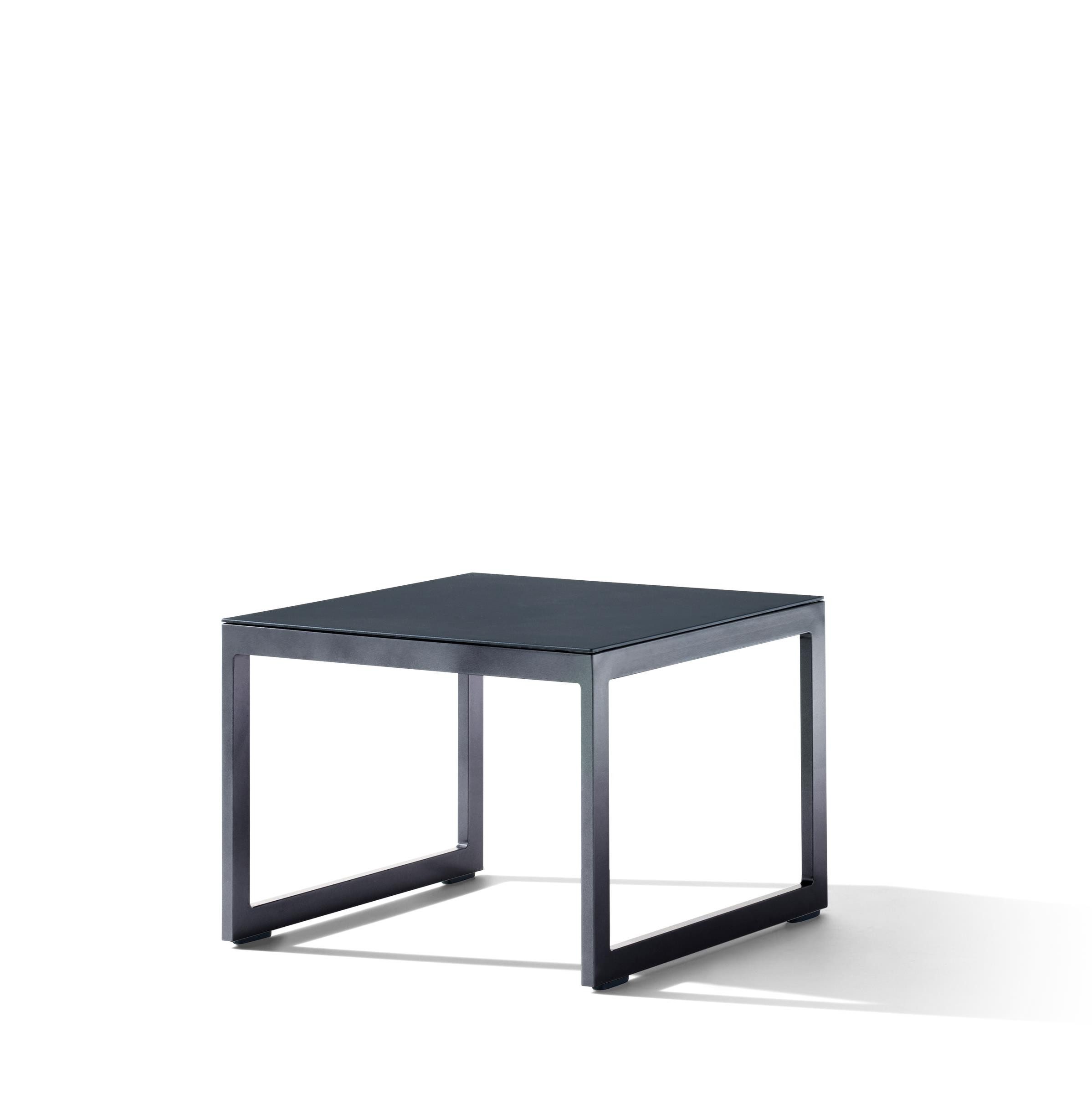 Die eisengraue Oberfläche des Lounge Tisches verleiht ihm eine moderne und elegante Optik, perfekt für stilvolle Outdoor-Bereiche.