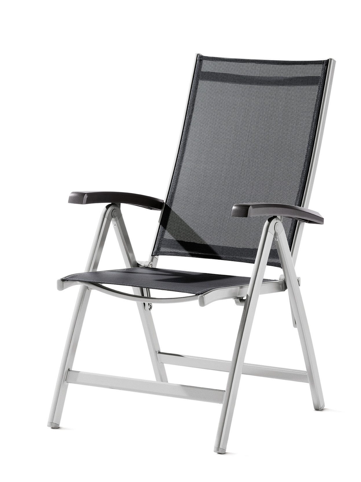 Der Klappstuhl Salerno ist die ideale Ergänzung für Ihren Garten oder Outdoor-Bereich. Mit großzügigen Abmessungen von 71x62x109 cm (B/T/H) bietet er Ihnen einen bequemen Sitzplatz, um die Natur zu genießen. Das Gestell aus robustem Aluminium in edlem Graphit verleiht dem Stuhl eine moderne Optik und sorgt gleichzeitig für Stabilität und Langlebigkeit. Die Armlehnen aus Aluminium-Druckguss in Eisengrau bieten zusätzlichen Komfort und eine elegante Note. Das hochwertige Textilux®-Kunstfasergewebe in Grau bietet nicht nur eine angenehme Sitzfläche, sondern ist auch witterungsbeständig und UV-beständig, was eine lange Lebensdauer garantiert. Der Klappstuhl Salerno wird montiert geliefert und ist sofort einsatzbereit. Mit einem Gewicht von 5,8 kg lässt er sich leicht transportieren und bei Bedarf platzsparend zusammenklappen. Genießen Sie entspannte Stunden im Freien mit dem Klappstuhl Salerno.